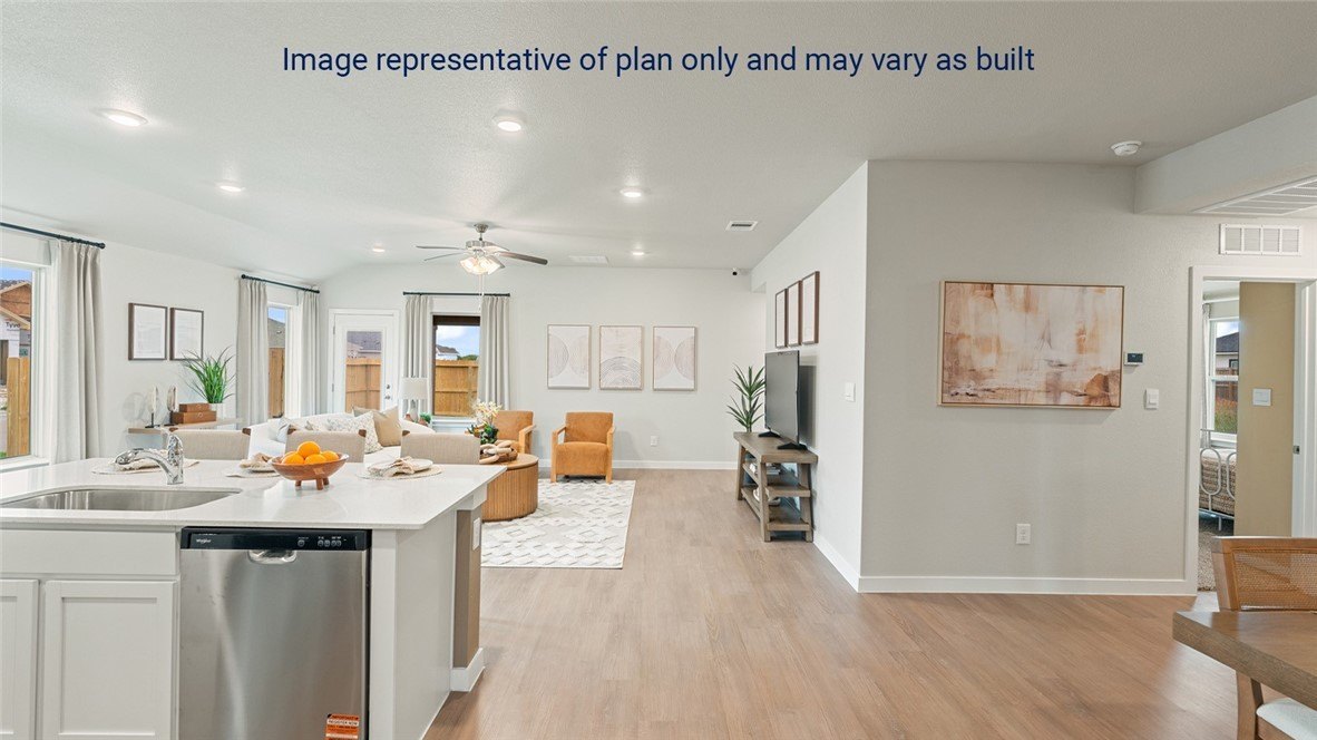 Property Description: The Lakeway plan is a single-story, 4-bedroom, 3-bathroom home featuring approximately 2,042 sq ft of living space. Located just off the entry, you will find a study, the fourth bedroom, and a hall bathroom. Down the hall, is the open-concept kitchen, dining, and living area. The central kitchen includes an oversized breakfast bar with beautiful granite countertops and stainless-steel appliances. Bedroom 2 and 3 along with another full bathroom are off the dining area. Bedroom 1 features a spacious walk-in closet and luxurious bathroom. Step outside onto the standard rear covered patio, perfect for enjoying the beautiful outdoors. You'll enjoy added security in your new D.R. Horton home with our Home is Connected features. With D.R. Horton's simple buying process and ten-year limited warranty, there's no reason to wait! (Prices, plans, dimensions, specifications, features, incentives, and availability are subject to change without notice obligation.)