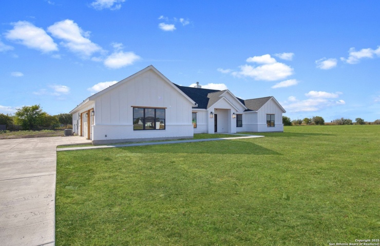 Property Description: This thoughtfully designed residence features 4 spacious bedrooms, including two primary suites, 3.5 baths with a convenient Jack & Jill setup, and a dedicated home office. The open-concept layout showcases soaring 10-ft ceilings throughout, with 12-ft ceilings in the living room and primary suite, filling the home with natural light and an airy, elegant feel. At the heart of the home, the chef's kitchen boasts an oversized island, walk-in pantry, and plenty of space for cooking and entertaining. Both primary suites provide private retreats with spa-inspired finishes, while the secondary bedrooms offer comfort and versatility. Enjoy evenings on the covered patio, already designed for your future outdoor kitchen, with plenty of room in the backyard for a pool, garden, or playscape. A 3-car garage offers ample storage and parking. Zoned to the highly sought-after Navarro ISD, this home offers an excellent education option for families while being ideally located with easy access to Seguin's amenities and just a short drive to New Braunfels and San Antonio.