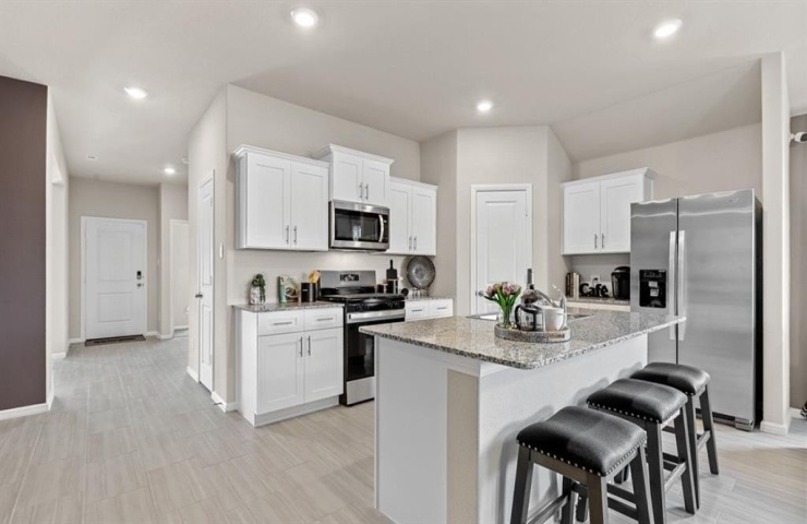 Property Description: Available for a Quick Move-in!! Beautiful new home built by D.R. Horton in the new community of Longhorn Estates located in the heart of South Fort Worth and Crowley ISD! Fabulous single-story Lakeway Floorplan Elevation B-features 4 bedrooms, 3 bathrooms, and a 2-car garage. Complete and Move-in Ready! Designed for modern living, this home offers an open-concept layout connecting the family room, dining area, and chef-inspired kitchen, complete with a large seating island, granite countertops, stainless steel appliances, a gas range, built-in microwave, and a corner pantry. The primary bedroom includes a walk-in closet and a bathroom with a wide quartz-topped vanity and a 5-foot oversized shower. Ceramic tile flooring flows through the entry, hallways, and wet areas, and the home includes a Home Is Connected® Smart Home Technology package. Step outside to enjoy the covered back patio and a fully fenced backyard with sod and a sprinkler system-perfect for relaxing or entertaining. Additional features include a gas tankless water heater for energy efficiency. Longhorn Estates is more than a neighborhood; it's a community designed with your future in mind.