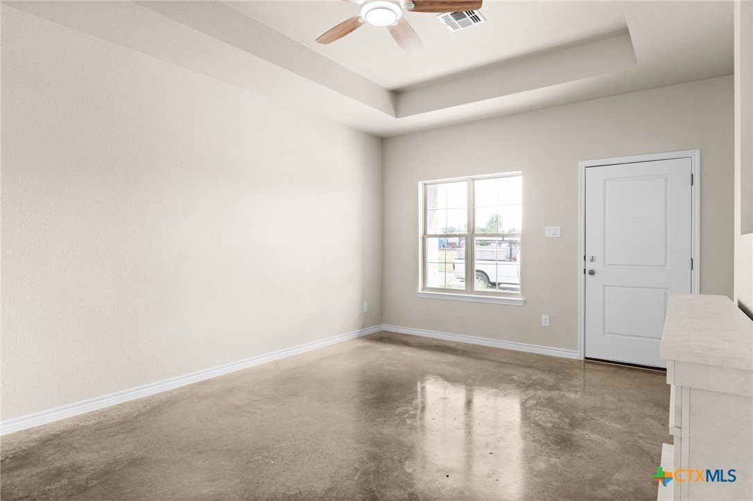 Property Description: Happy Veterans Day! Builders preferred lender is contributing 1.5% lender credit-use toward closing costs & interest rate buy-down! builder will contribute the additional .5% towards investors closing. Modern comfort meets thoughtful design in this brand-new, single-story luxury townhome. Offering 3 spacious bedrooms and 2 beautifully appointed bathrooms, this home provides the perfect balance of style, comfort, and low-maintenance living. From the curb, the three-sided stone and brick exterior, board-and-batten accents, and inviting front porch make a striking impression. Inside, you'll find sleek stained concrete flooring throughout and an open-concept layout anchored by a bright, cozy living area with an electric fireplace-ideal for both relaxing and entertaining. The kitchen shines with a large breakfast bar, pendant lighting, and a full suite of included stainless-steel appliances-electric range, microwave, and dishwasher. The private owner's suite features a double vanity, oversized walk-in shower, and an expansive walk-in closet. Additional highlights include ceiling fans in all bedrooms and spray foam insulation for superior energy efficiency. Enjoy outdoor living with a fully fenced backyard, full-yard sod, and a wood privacy fence. Conveniently located just minutes from Copperas Cove City Park, with quick access to the bypass for an easy commute to Fort Hood. Investor Special-this townhome is currently leased through April 2026, offering an excellent turnkey income opportunity. Call today to take a peak!
