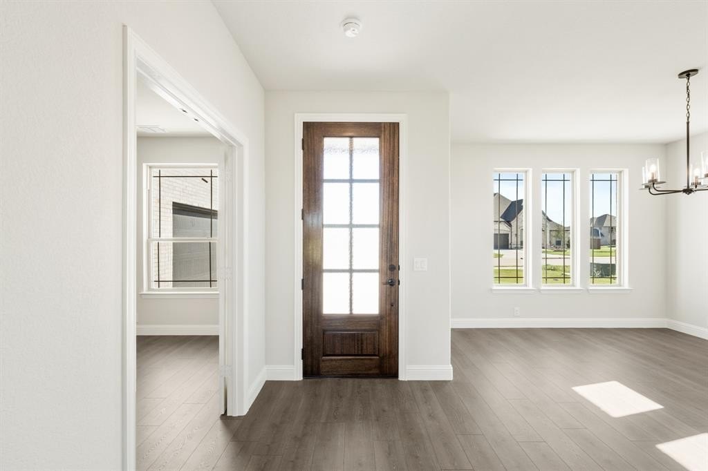 Property Description: NEW! NEVER LIVED IN. Ready now on an oversized homesite exceeding half an acre. Bloomfield Homes Classic Series Seaberry II is a two-story home with 4 bedrooms and 4 baths that feels deliberately scaled, with wider rooms, taller sightlines, and strong architectural moments throughout! An 8-foot Urban front door opens to a long, clean entry that immediately shows off the depth of the home, with a glass French-door study set off the foyer and a formal dining room positioned separately at the front. A butler’s pantry connects the dining room to the kitchen, making the transition between spaces feel natural and practical. The kitchen leans classic and substantial with Charleston-style white cabinetry, upgraded backsplash, built-in stainless steel appliances, and a large island that faces the main living space. The family room stretches upward around a stone-to-ceiling fireplace with cedar mantel and raised hearth, framed by tall windows that look out to the backyard and bring in steady natural light. Laminate wood flooring carries through the common areas, while large-format 12 x 24 tile defines the wet areas with a clean, finished look. Upstairs, the game room features open railing that looks down into the living space below, adding dimension without closing anything off. The primary suite is sized to accommodate full furniture layouts and includes a garden tub, glass-enclosed shower, L-shaped dual vanity, and a spacious walk-in closet. Secondary bedrooms are spread out and paired with full baths, giving each space its own footprint. Outside, the scale of the lot sets this home apart, with a fully sodded yard, sprinkler system, modern white brick exterior, and covered patio on a homesite that delivers real usable space beyond the fence line. Call or visit the Bloomfield Homes model at Coyote Crossing to tour this Seaberry II in person.