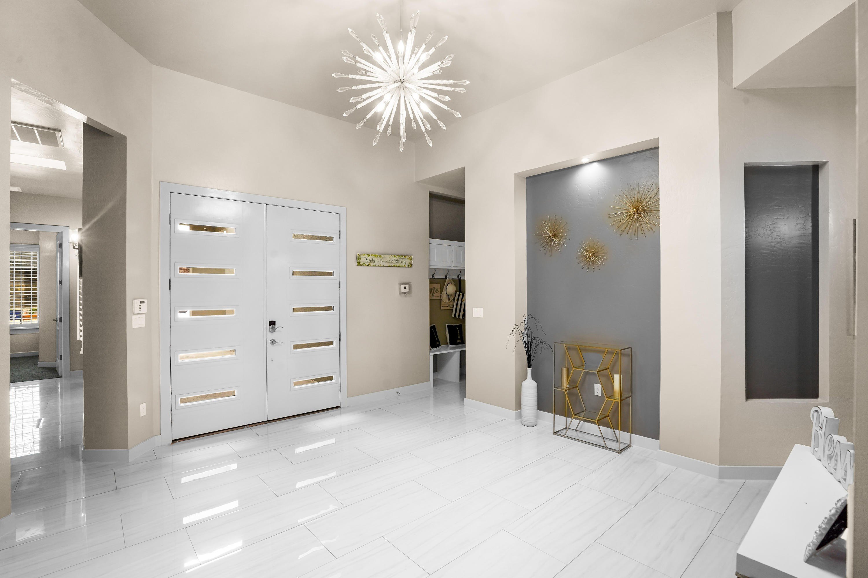 Property Description: Introducing the ever-so-popular Serenity Floor Plan. This brilliant floor plan that includes the following features. Beautiful step-up kitchen with upgraded stainless steel appliances. Large family room accented with tall ceilings. A theatre room that is always a hit with friends and family. The master bedroom and master bath have all the amenities you've been looking for such as extra large dual shower, granite countertops, large walk in closet.. to name a few. 3 more bedrooms that offer accent walls and tall ceilings. This model comes standard with a 3 car garage that is completely painted on the inside to include the floor and has overhead storage. All major windows offer custom shutters.