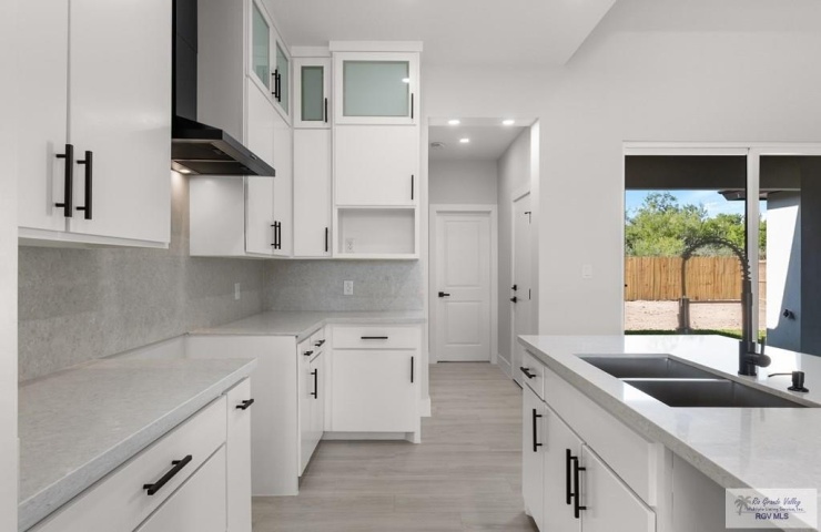 Property Description: Located in the highly sought-after Cross Country Trails Subdivision, custom modern 4-bedroom, 3-bath home offers style, comfort, and efficiency. Inspired by clean symmetry and modern calm. Built with balance and simplicity in mind, this home pairs clean lines with subtle textures for a calm, modern feel. The kitchen features quartz countertops, a spacious walk-in pantry, and an open layout that flows seamlessly into the dining and living areas. The primary suite includes a large walk-in closet and separate shower with built-in niches. The split floor plan provides added privacy for the additional bedrooms. You'll also find a roomy laundry area with sink, a fully fenced backyard, Spray foam Insulation for Energy efficiency and a limestone-and-stucco facade that adds to the home's curb appeal. Zoned to Los Fresnos ISD and just a short drive to SpaceX and South Padre Island.