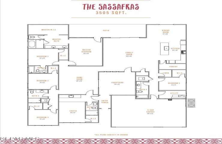 Property Description: The Sassafras: With 6 bedrooms, 5 bathrooms, and 3,505 square feet, this single-story layout has space for everyone and then some. The kitchen delivers with granite countertops, pot filler, apron sink, and upgraded lighting all tied to a large dining and living area. Multiple bedrooms with private baths, including a generous primary suite, make multi-generational living a breeze. Includes a 3-car garage. Listing subject to errors, omissions, and changes without notice. Info provided is deemed reliable but not guaranteed. MLS photos are for marketing purposes only and may not reflect actual colors or upgrades. Please verify selections during design appointment.