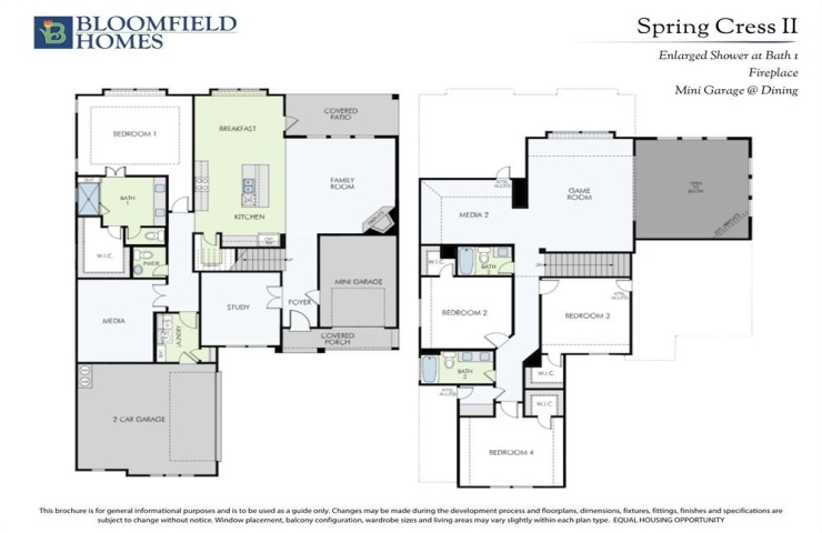 Property Description: *Limited Time Offer - $25K Price Reduction AND $15K Closing Cost Assistance! Contract on or before February 28th, 2026. See Community Manager for details.* NEW! NEVER LIVED IN. Ready Feb '26. Bloomfield Homes presents the Spring Cress II, a two-story hosting 4 bedrooms and 2.5 baths with a distinctive 3-car garage configuration that includes a mini garage - set on a HALF ACRE greenbelt lot! The handsome exterior has architectural appeal and combines Elderwood brick with Austin saw-cut stone accented by brick, buff mortar, and stained wood touchpoints including the garage doors and custom 8' front door. More 8' interior doors continue inside, only further enhancing the tall ceilings! Wood-look tile goes from front to back in the downstairs primary spaces, while glass French doors define the Study without closing it off. The Family Room's dramatic stone-to-ceiling fireplace adds texture in the central gathering area - even has gas logs and a direct vent! Stained and glazed cabinetry is paired with upgraded White Ice quartz countertops in the Deluxe Kitchen, along with a farmhouse sink, upgraded kitchen faucet, herringbone-pattern backsplash, and pendant lighting over the island. Upgraded stainless steel appliances sit flush and allow for more cabinet storage, too! The Primary Suite on the main level features more wood-look tile flooring, an enlarged shower with upgraded tile, more quartz surfaces, and a generously sized walk-in closet. Also downstairs, a dedicated Media Room adds flexibility without disrupting the central living spaces. Upstairs, the layout expands to 3 secondary bedrooms with walk-in closets, 2 full baths finished with tile surrounds, a large Game Room, and a second Media Room! Practical upgrades include 2-inch faux blinds throughout, a gas line at the covered rear patio, low-E windows, and a tankless water heater, all reinforcing the home’s thoughtful build quality. Visit the Bloomfield Homes model at Glenbrook to learn more about this dream home!