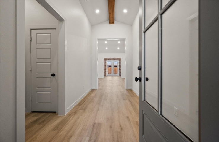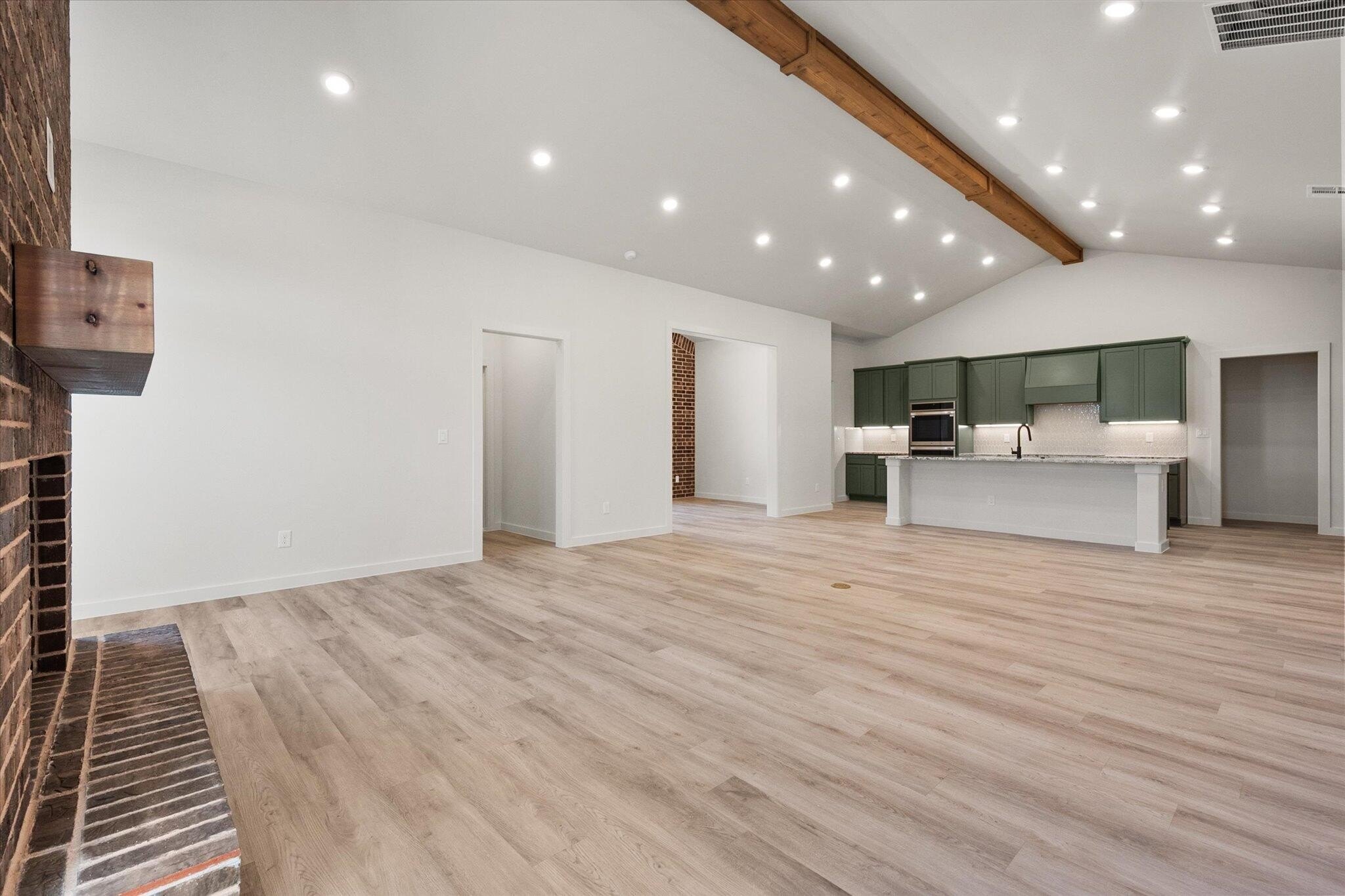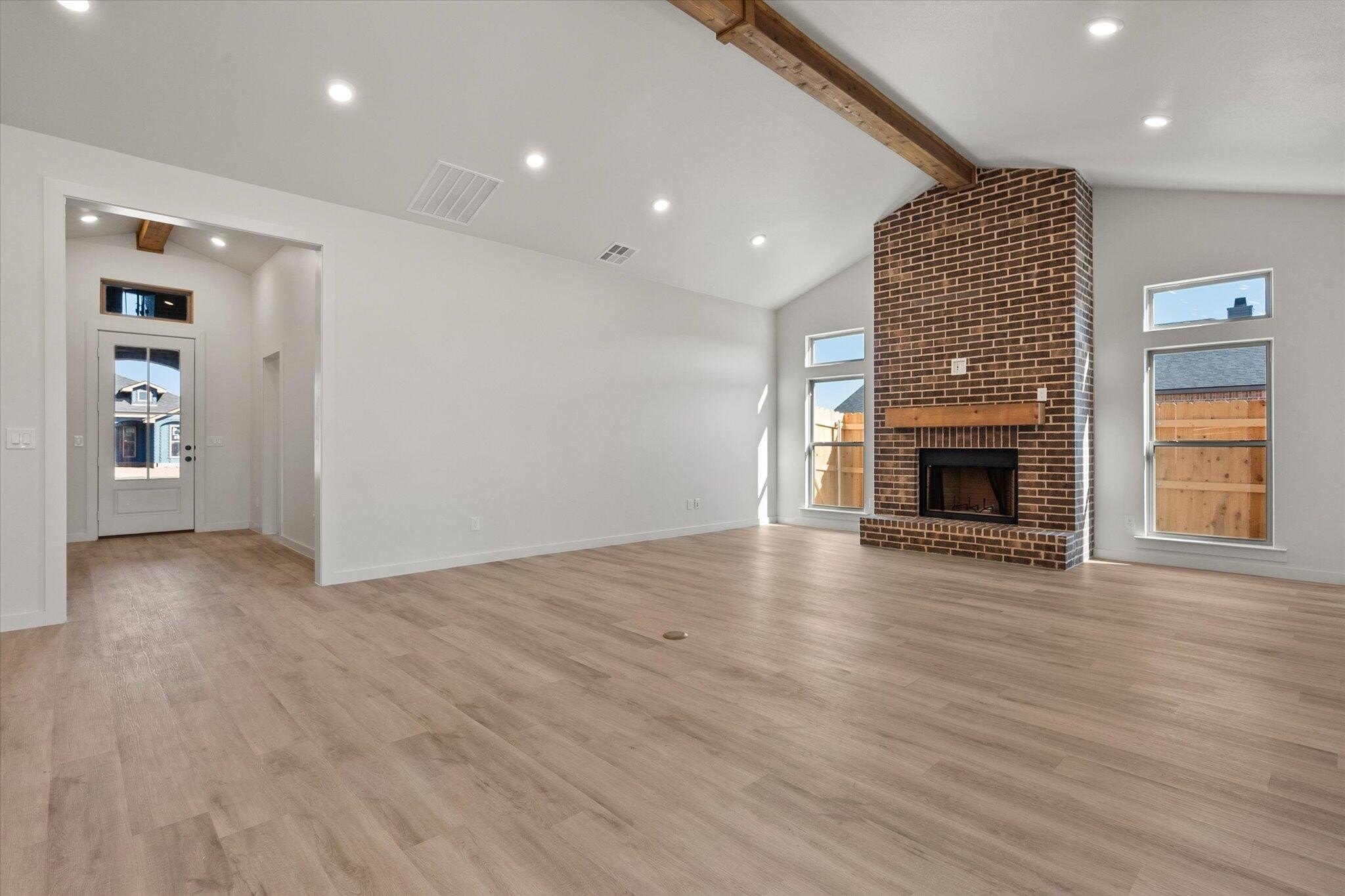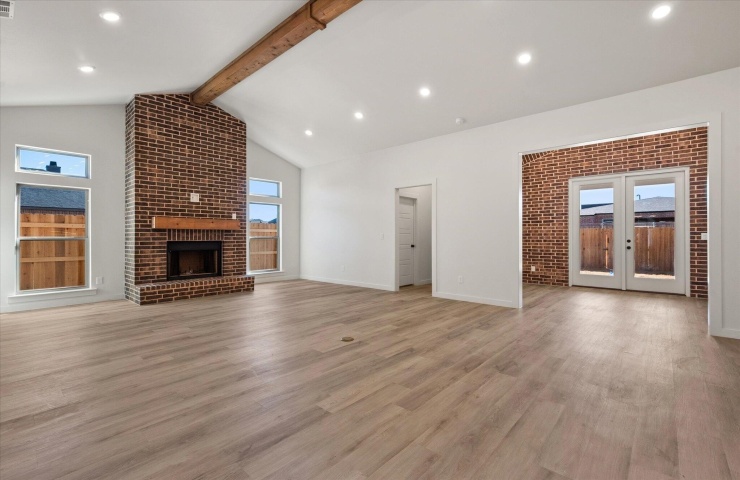 Property Description: Buy NOW and get up to $14,000 Use-It-Your-Way Cash! This stunning home features a brick exterior with grand archways and a large front porch. Inside, luxury vinyl plank flooring flows through the open-concept kitchen, living, and dining areas. The kitchen boasts granite or quartz countertops, a spacious island with bar seating, stainless steel appliances including a double oven and built-in microwave cabinet, and a large enclosed butler's pantry with counter space. The oversized utility room includes a sink, counter space, and storage. A floor-to-ceiling brick fireplace adds warmth to the living area. The secluded master suite offers a garden tub, walk-in shower, his and hers vanities, and an oversized walk-in closet with utility room access. A private guest bedroom with a bathroom and a covered back patio complete this home. Premium plumbing and lighting fixtures throughout.