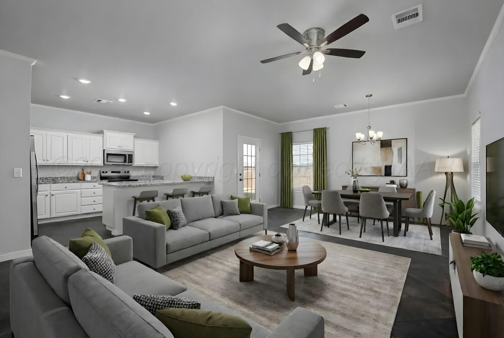 Property Description: MLS# 26-844 - Built by Bluehaven Homes - Ready Now! ~ Rates as low as 2.99% (Conditions apply-see builder for more info) OR UP TO $15,000 CC**This stunning 3-bedroom, 2-bathroom new construction home in Canyon ISD has it all. This open-concept design features a chef-inspired kitchen with granite countertops, custom cabinetry, and bar seating--perfect for entertaining. Relax in the isolated primary suite, complete with a large walk-in closet and a sleek dual-vanity shower. Built for long-term comfort, the home includes energy-efficient spray foam insulation and granite surfaces throughout. Highlights: Interior: 9' ceilings and durable stained concrete flooring. Outdoor: Large covered patio, full sod, and professional irrigation. Location: Zoned for Sundown Lane Elementary & Randall High