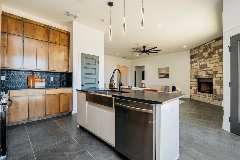 Property Description: Discover this beautiful new construction home featuring three bedrooms, two bathrooms, and a dedicated office space or bonus room! It boasts a fantastic open floor plan that enhances the spaciousness of the living area. The large living room has tile flooring and an elegant fireplace, creating a warm and inviting atmosphere. The kitchen is generously sized, offering plenty of cabinet and counter space, making it both beautiful and functional. The primary suite includes a luxurious walk-in shower, double vanities, and ample closet space. Outside, the covered patio provides the perfect retreat and overlooks a fenced backyard, making it great for entertaining. This home offers a great location, conveniently located near shopping, schools, and restaurants.