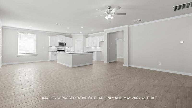 Property Description: The Lakemont is one of our one-story floor plans featured in the Westmont community in Lubbock, TX. Offering options for both classic brick and brick and stone exteriors , the Lakemont is sure to impress. Take a look inside this 4 bedroom, 3 bathroom home and discover 2,558 square feet of elevated modern living. The Lakemont first welcomes you home with an inviting front porch. Once inside, you'll discover the designated study or office area, an ideal spot for simultaneous focus and comfort. The Lakemont features open kitchen, family, and dining room areas, creating a seamless mix of leisure and entertainment at the heart of your home. The kitchen features shaker style cabinets complete with stainless steel appliances, modern tile backsplash, and quartz countertops to add an extra layer of charm to your space. The spacious family room is an ideal spot for entertaining and everyday enjoyment, sure to be loved by everyone in your home. Each bedroom features plush carpeted floors and plenty of room for each member of your household. The primary bedroom features its own attached bathroom, complete with quartz vanity tops, a walk-in shower, and a walk-in closet, providing plenty of additional privacy and serenity. The Lakemont offers endless opportunities for style and functionality at every turn. Estimated completion date: 3/3/2026. Images are representative of plan and may vary as built.