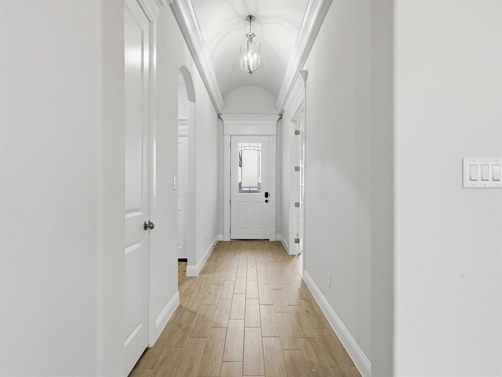 Property Description: Stunning new construction by Al Couto Homes situated on an oversized corner lot, over half an acre. This single-story home offers 4 bedrooms, 2 baths, and a 2-car garage with high-end finishes throughout. The sophisticated living room features a dramatic floor-to-ceiling stone fireplace, extensive crown molding, and wood-look tile flooring filled with natural light. The chef’s kitchen is designed to impress with an oversized granite island, gas cooktop, vent hood, under-cabinet lighting, and a spacious walk-in pantry. The eat-in dining area overlooks the expansive backyard. The private owner’s suite is a true retreat with dual vanities, a soaking tub, oversized walk-in shower, and a generous walk-in closet with seasonal racks. A split floor plan provides privacy, with spacious secondary bedrooms and a flexible fourth bedroom ideal for an office. Enjoy added function with a mud bench and built-ins off the garage and a utility room with cabinetry. Relax on the oversized covered patio and take in Texas sunsets. Foam insulation enhances energy efficiency. Gated community with park, pond, pool, and pavilion. Minutes from Chisholm Trail Parkway.