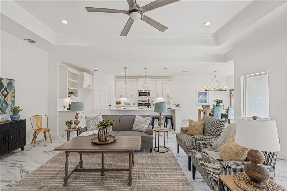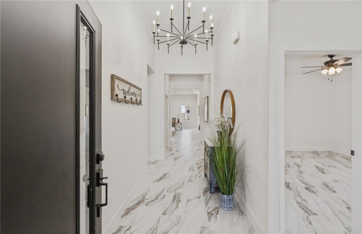 Property Description: Move-in-ready new construction on a corner lot with a double gate and space for boat or RV parking. This 4 bedroom, 3 bathroom home features an open layout with high ceilings, tile flooring throughout, and a spacious living area. The kitchen includes custom cabinetry, exotic countertops, and under-cabinet lighting.The primary suite includes dual vanities, a fully tiled walk-in shower, a tub, and a walk-in closet with built-in drawers and shoe shelving. You'll also find a dedicated office, a private in-law suite, and a utility room with additional cabinetry. Energy-efficient features include spray foam attic insulation, LED lighting, and gas appliances. Exterior highlights include 4-side stucco, a covered patio, a 2-car garage, and a 3-car driveway.