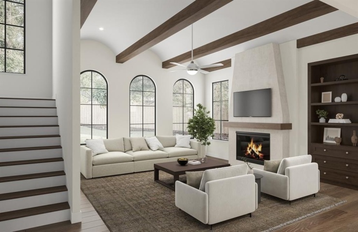 Property Description: MLS# 21168137 - Built by Homebound - May 2026 completion! ~ The Sienna blends elegance and versatility in a thoughtfully designed two-story home. The first floor features an open-concept kitchen with dual pantries, casual dining, and a great room accented by decorative ceiling beams that opens to a covered patio for effortless indoor-outdoor entertaining. Tucked conveniently near the primary suite, laundry room, powder bath, and two-car garage, the back-of-house layout is designed for everyday ease. The luxurious primary retreat includes a spa-inspired bath and a generous walk-in closet. A flexible front room offers the ideal space for a home office or lounge, while a secondary bedroom with a full bath and walk-in closet provides comfort for guests. Upstairs, a spacious loft and dedicated media room create multiple gathering spaces, complemented by two additional bedrooms with walk-in closets. Bedroom 4 features its own private bath, while a second full bath is conveniently located in the hallway, serving the remaining upstairs living spaces. A private balcony off the loft extends living outdoors, offering a peaceful place to unwind. With its thoughtful layout, premium finishes, and seamless connection to the outdoors, The Sienna sets the standard for refined lakeside living. This home includes thoughtful upgrades such as an outdoor kitchen with phantom privacy screens, garage epoxy floor coating, and boxed beams at the loft and great room.