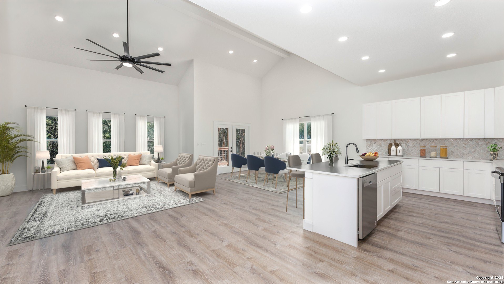 Property Description: Step into this stunning custom new construction home, thoughtfully designed to offer both comfort and versatility. Featuring a flexible floor plan, this property can be tailored to your needs as a 4-bedroom home or a 3-bedroom home with a spacious flex room-perfect for a den or a large office. The home boasts luxurious plank vinyl flooring throughout (no carpet), elegant white cabinets, and soaring vaulted ceilings with fans in every room for year-round comfort. The longer driveway adds extra parking convenience, while the wood panel ceilings on the front and back patios provide rustic charm. A spacious side yard enhances the outdoor appeal, making this home an exceptional blend of modern living and timeless design. Don't miss your opportunity to own this Canyon Lake gem!