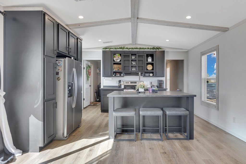 Property Description: Beautifully maintained , perfect condition and basically new is just a few words that come to mind when describing this home! A 2025 built with a cozy and warm style its sure to make anyone feel right at home. Featuring light flooring with dark cabinets throughout, cathedral ceiling style and very spacious 3 bedrooms and 2 complete baths. Please note buyer must move the mobile home from the land.