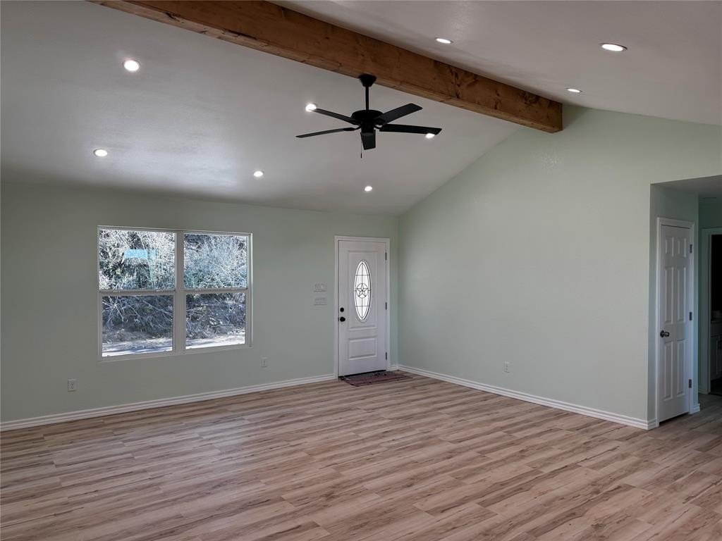 Property Description: Affordable country living awaits in this newly built barndominium styled home set on 1.54 acres atop a gentle hill. The open-concept layout features soaring vaulted ceilings in the living room and a spacious island kitchen designed for gathering. The primary suite sits just steps from the oversized laundry room and includes a well-appointed bathroom and a generous walk-in closet. With a split-bedroom design, everyone enjoys added privacy. Relax on the large back porch and take in the peaceful spring evenings overlooking the Silverado Ranch which ensures backyard privacy. A separate storage building provides plenty of space for tools, equipment, and outdoor essentials. A versatile property with endless possibilities. 200 feet or asphalt drive and a concrete pad at the house means plenty of parking space. Slab was pre-treated for termites.