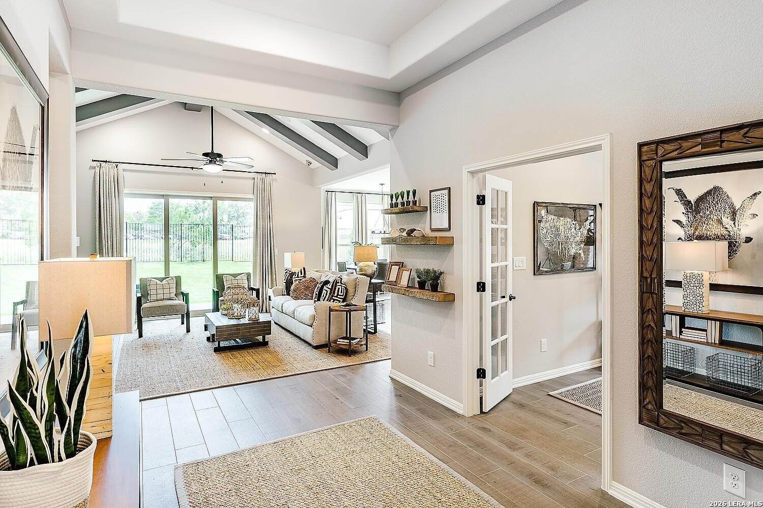 Property Description: If you are looking for a quality home with luxury features and finishes, high interior ceilings on a spacious oversized lot than look no further than Empire Homes in Everly Estates. With easy access to all major interstate highways and local military facilities, this open concept home with extended 25 foot foyer with 11' ceiling says "welcome home"! The cozy family room with cathedral pitch ceiling along with large gourmet kitchen and 9 foot island is the place everyone wants to come and gather. Whether you are warming up around the stone surround wood burning fireplace in the winter or venturing outside to the 17 foot covered patio to enjoy the peace and quiet of the .68 acre lot, there is always a perfect spot to relax in this lovely home. The Bowman floor plan comes equipped with 4 bedrooms, 3 full bathrooms, large primary bedroom with bay window, ample primary bathroom with walk-in tiled shower, soaking tub and oversized walk-in closet. The kitchen is a chef and baker's delight with 42" upper custom soft close cabinetry and pulls, 9 ft island with 3 pendant lights, under counter lighting, 36" gas cook top and vent hood with built-in stainless appliances. The walk-in pantry has room to store all of the essentials and then some. If you need additional storage for overflow, a storage room measuring 13' x 8' will fit the bill. The 2,577 sq. foot home includes 3 sides masonry of stone, stucco and hardi-plank siding with a 3 car side entry garage and two garage door openers. Custom soft close white cabinets are included throughout the home, level 5 granite counters, designer backsplash, luxury vinyl wood plank flooring, Moen plumbing fixtures, in-home pest control system, tankless water heater, water softener loop, Kinetico water filtration system at the kitchen, full irrigation system in yard and flower beds with landscape package. Additional interior and exterior electrical and low voltage features run throughout this well designed home making it ready for move-in. ** Photos are renderings are may not include all details in home currently being built. Please ask sales rep for more details**