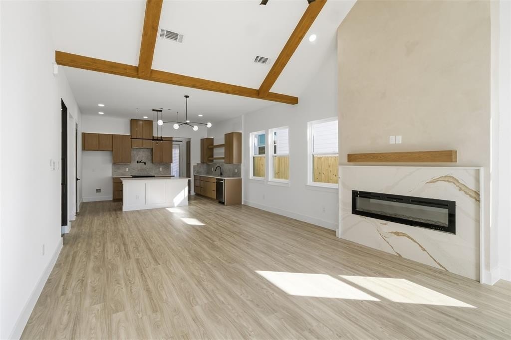 Property Description: If you’ve been searching for a home that feels like a luxury designer build, offers real space, and keeps you close to everything Dallas has to offer, this is the one. This stunning new construction modern single story home delivers over 2,200 sq ft of thoughtfully designed living space with 4 bedrooms and 2 baths, perfect for professionals, move up buyers, and anyone who wants modern style without sacrificing comfort or functionality.High ceilings with wood beams, beautiful white oak flooring, and a bright open layout that’s perfect for everyday living and entertaining. The kitchen is a total showstopper featuring European style cabinetry, Taj Mahal quartzite countertops, premium appliances, and built in wine storage. It’s the kind of space that makes you want to host dinner, invite friends over, and actually enjoy being home. The primary suite is your private retreat with a spa inspired bathroom, sleek modern finishes, and a custom closet system that’s both stylish and functional. Throughout the home, you’ll notice details like floating vanities, designer tilework, and wall mounted fixtures that bring the modern luxury feel all the way through. And let’s talk location, because it’s hard to beat. You’re just minutes from Downtown Dallas, Bishop Arts, the Dallas Zoo, and the newly opened Halperin Park. Halperin Park is one of Dallas’ newest signature spaces with gorgeous skyline views, walking trails, green space, and beautiful gathering areas—perfect for weekend strolls, a morning reset, or just enjoying the city vibe. This is a rare opportunity to own a true modern Dallas masterpiece. Schedule your showing today and come see it in person.