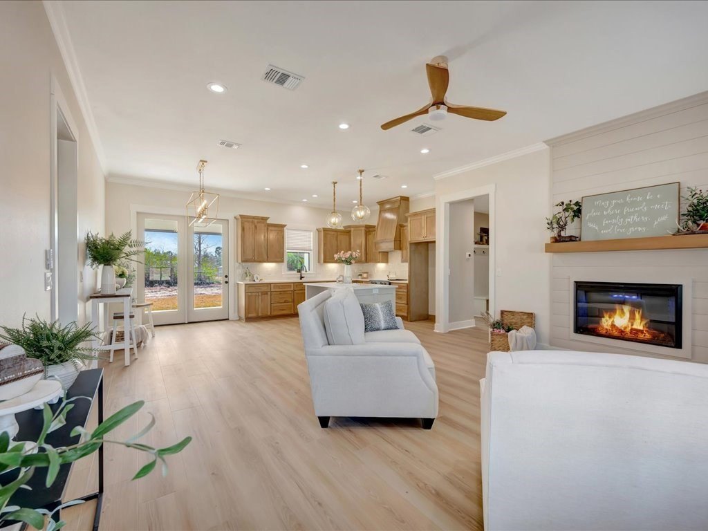 Property Description: New construction 3-bedroom, 2.5-bath home located in the up-and-coming Evergreen Estates subdivision. This thoughtfully designed home offers open-concept living with high ceilings, crown molding, and durable vinyl plank flooring throughout. The kitchen features a large accent island with bar seating, decorative light fixtures, and ample workspace—perfect for both everyday living and entertaining. A split-bedroom layout provides privacy, while the spacious primary suite includes dual vanities, a separate soaking tub and shower, and an oversized walk-in closet. Additional highlights include mudroom storage, a large laundry room, and a covered patio for outdoor enjoyment.