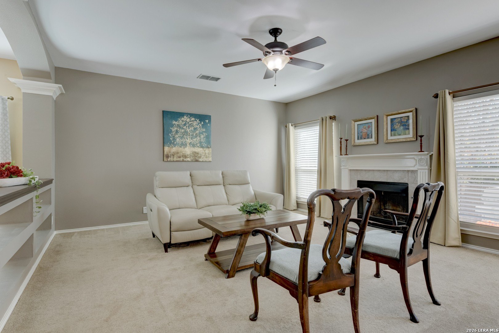 Property Description: This beautiful, move-in-ready home is located in the gated community of Rosewood Gardens in the highly desired Churchill area in N. E. San Antonio. This well-built 3-bedroom, 2.5-bath home features an airy and open layout with two living areas, elevated ceilings, fresh paint, and a spacious upstairs loft and huge 18 by 20 ft. owners suite with a Juliet balcony-perfect for an office or game room or just a place to relax. The kitchen offers granite counters, a large island, reverse osmosis system, and all new appliances, plus the refrigerator, washer, and dryer convey. This house is move in ready! Enjoy a cul-de-sac lot with extended driveway and a spacious two car garage. Behind the home is a metal covered patio ideal for relaxing, grilling and entertaining. Private gated access to the elementary school is just a short walk away, with shopping and dining nearby. Perfect for military families or anyone seeking a secure, low-maintenance lifestyle in a prime NE San Antonio location. Priced to move and impress -schedule your showing today!