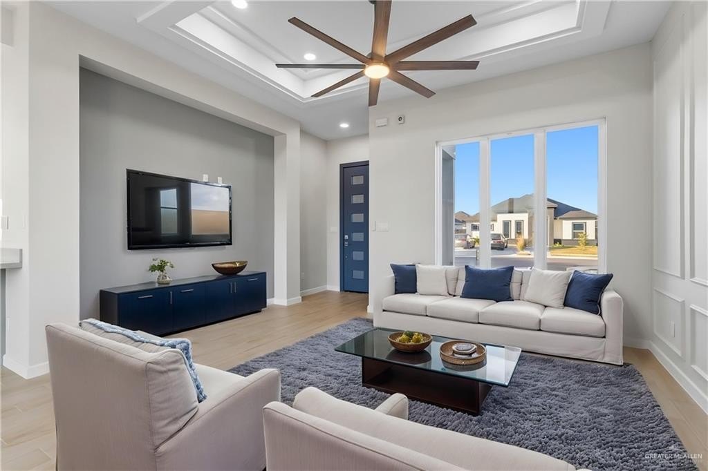 Property Description: SELLER CONCESSIONS AVAILABLE! Built by popular builder Four Stones Construction, this beautiful home is located in one of San Juan's most desirable new subdivisions, Oakridge Estates. The luxurious home with an open-concept layout features a designer kitchen with quartz countertops, large island, under-cabinet lighting, and ample storage. The living area offers modern ceiling details, large windows with tons of natural lighting, and a stylish TV wall that adds both function and appeal. The home includes 3 spacious bedrooms and 2 full bathrooms, with a private primary suite featuring a walk-in shower, dual sinks, and a walk-in closet with built-in shelving. The fully fenced backyard includes a patio ideal for outdoor entertaining. Additional features include a garage, automatic sprinkler system for garden, and attractive curb appeal. Conveniently located at the corner of Cesar Chavez Blvd & Hwy 495 in Oakridge Estates. Schedule your showing today.