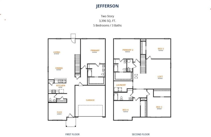 Property Description: MLS# 21179417 - Built by NHC - Ready Now! ~ The Jefferson Plan from our Liberty Series redefines spacious living, offering a layout designed for ultimate comfort and convenience. This 2-story home features 5 bedrooms, 3 bathrooms, a 2-car garage, and a generous 3,396 square feet of living space. Unique to this plan, it includes two primary bedrooms, each with a private bathroom — one conveniently located on the main level and the other on the upper level, offering flexible living options for multigenerational families or hosting long-term guests. As you enter, you’ll pass a versatile flex room and a half bathroom before arriving at the open-concept kitchen. The kitchen, complete with a central island, seamlessly overlooks the dining area and spacious family room, making it the heart of the home. Stairs located in the family room lead to the upper level, where you’ll find three additional bedrooms, one full bathroom, a huge loft for additional living or entertaining space, and a conveniently located laundry room. Disclaimer: Photos may not represent the actual home. They are for illustrative purposes only and may depict a similar home with the same floorplan.