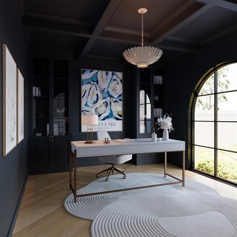 Light-filled living areas are defined by soaring ceilings, statement millwork, and layered natural textures that create both scale and intimacy. The open-concept layout flows seamlessly into a beautifully appointed chef’s kitchen featuring custom cabinetry, premium appliances, stone surfaces, and designer lighting—ideal for elevated entertaining and everyday living.