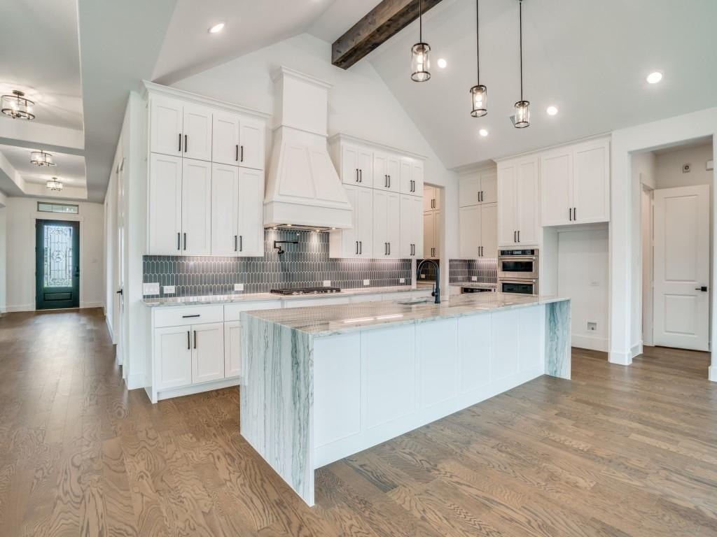 Property Description: RISLAND HOMES SOFIA floor plan. Welcome home, Neighbor! Stunning curb appeal awaits in this gorgeous one-story home with cream painted brick and coordinating stone elevation nestled perfectly on an interior lot! The roomy front porch comfortably invites guests as they arrive! Entry foyer is nothing short of impressive with tray ceilings to highlight its luxurious feel. Masterpiece study created with you in mind with cathedral ceiling, boxed wood beam, and thoughtfully placed windows for abundant natural light. The Gourmet Kitchen begs for your culinary creativity to shine through with KitchenAid appliances, pot filler, farmhouse sink, and abundant cabinets with under cabinet lighting. Off the main Kitchen, the Morning kitchen is a charming inclusion for possibilities such as a coffee bar or perhaps even a crock pot station and is complete with sink & cabinetry for extra storage! Kitchen, family room, and casual dining are open to each other creating a highly desirable expansive open concept feel. The kitchen and family room share a soaring cathedral ceiling which is tied together with beautiful boxed wooden beam! BBQ like a boss on your oversized covered patio with included gas drop. Tranquility is yours in the owner’s suite with sizeable windows & spacious room size. Oasis-like bath includes super shower tiled from floor to ceiling finished with rainfall shower head & traditional shower head. Hardwood floors are sprawled throughout the home including owner’s suite. All three secondary bedrooms are nicely sized and include private baths. Powder bath is perfect for guests. Enjoy the EV outlet included in the garage for that electric vehicle. New Prosper ISD Elementary school opened Fall 2025 and is located within the community! Enjoy the community amenities with clubhouse-meeting space & full kitchen, infinity pool, work out room, yoga lawn, playground, pond and walking trails. See this home anytime from dawn to dusk through the NterNow system!