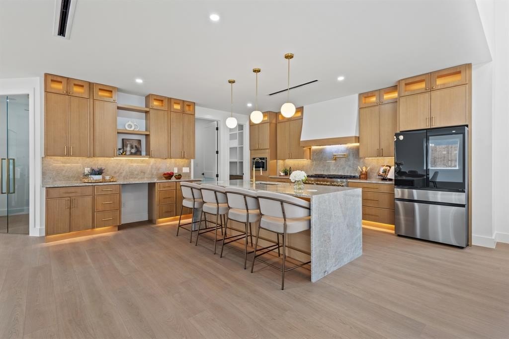 Property Description: Experience a redefined Modern Scandinavian luxury NEW CONSTRUCTION home minutes away from the Twin Wells Golf Course and minutes away from Downtown Dallas! This home is situated alongside well connected Highways such as Interstate 30, Interstate 35E with an easy access in and out of Dallas including a 15 minutes drive to the DFW Airport! This exquisite home provides an abundance of amenities such as shopping, dining, plenty of entertainment options within Uptown Dallas, The Historic Bishop Arts, Keller Park, Stevens Park Golf Course, and variety of coffee shops! This spacious 4,750 new construction home, 4 Bed, 5 bath, office, game-room, family room features an reimagined open floor concept with lovely engineered LVP wood spread throughout the entire home! The kitchen features a quartzite waterfall island, Z-line gas range, custom oakwood cabinets in every corner of the kitchen including the walk-in Pantry! The living room includes custom built-in wood cabinets, fireplace, and custom window panes for all the natural light! The master retreat boasts custom wood shelving in your walk-in closet, The master bath is a dream come true, which includes a double sink vanity for his and her alongside built-in makeup vanity! With a stand-alone tub, glassed enclosed walk-in shower, this is a true masters hideaway! The home is equipped with built in speaker system, Glass enclosed office room, custom lighting fixtures throughout, timeless wine cellar, a game-room with a built in wet-bar and its own powder room and much much more! A smart wired home you will have to see for yourself!