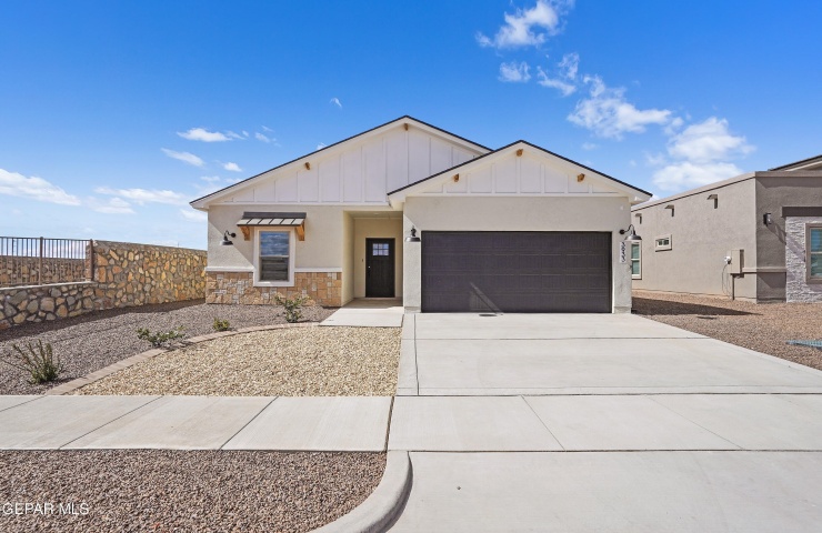 Property Description: Almost complete! Discover affordable luxury in this stunning new build, a spacious family home packed with high-end features perfect for those wanting upscale living without the hassle. The thoughtfully curated layout centers on a massive quartz island in the open kitchen with gourmet appliances framed by solid wood cabinetry, a bold designer black splash, and seamless wood-look tile flooring. Enjoy premium quality moldings, meticulous craftsmanship, a spacious primary suite with a luxurious spa shower, and a practical mud area for everyday convenience. This smaller-scale gem delivers elevated style at an accessible price, in East El Paso with low city property taxes. Visit our model home at 15049 Resolve, 79938 today! No backyard neighbors + large lot! Energy Star Certified, nearby a park. Easy access to Montana + Loop 375, Fort Bliss and access is still developing. SPECIAL RATE OPPORTUNITY! CONTACT LISTING AGENT FOR DETAILS!