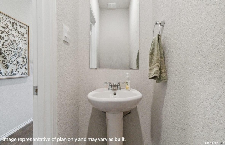 Property Description: Step into The Grace floor plan in Veranda in San Antonio, TX. This home showcases 2 classic front exteriors, full yard landscaping and irrigation and a 2-car garage. Inside this 4 bedroom, 2.5 bathroom home, you will find 1952 square feet of living space designed to meet your needs. The arched front patio opens to a grand foyer which then leads to a spacious living room. The living room blends seamlessly into the kitchen and dining area in an open concept floorplan. Your kitchen is built for the ultimate home chef and offers quartz counter tops, stainless steel appliances, and a kitchen island overlooking the living room. Don't forget a deep, single basin kitchen sink for convenience and ease. The staircase leads to the upstairs main bedroom suite, all secondary bedrooms, and your utility room. The Grace floor plan is ideal if you want to keep your entertaining space and private space separate. The upstairs main bedroom has an attached bathroom that includes a tiled walk-in shower, separate water closet and plenty of storage space with built-in shelving and a grand walk-in closet. Additional features of this home include sheet vinyl flooring in the entry, living room, and all wet areas, quartz countertops in all bathrooms and our HOME IS CONNECTED base package. Using one central hub that talks to all the devices in your home, you can control the lights, thermostat and locks, all from your cellular device.