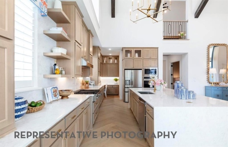 Property Description: Popular Varese plan by Highland Homes. Dbl door entrance invites you into foyer w soaring ceilings, curved wood staircase. Study has bookcases, wood floors. Private guest room. Great room w wood beam ceilings, 10' tall sliders, built-in's on each side of fireplace. Dream kitchen w an abundance of custom cabinets, 10' island, SS appliances inc. dbl ovens, 6 burner gas range, hutch w wine fridge. Primary has sitting area, spa bath w huge walk-on shower w dbl shwr heads. All en-suite bedrooms. Utility room has sink, ample cabinets & room for fridge. Downstairs media room. Oversized game room w wet bar. Extended outdoor living w pool bath. Backyard has room for pool. Stunning white brick exterior w black windows, black shingles. Walking distance to shopping & restaurants. Upgrades galore.