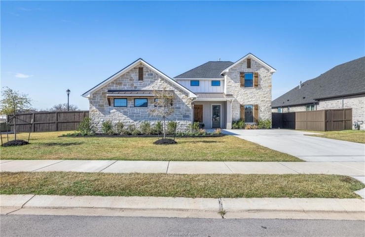 Property Description: Beautiful 4-bedroom, 4-bath home with an additional flex room, situated on a desirable corner lot with full brick and stone exterior and a side-entry garage. The interior showcases designer tile selections throughout, trimmed windows, and striking wood beams accenting the living area. A cozy fireplace with hearth and custom built-ins adds warmth and architectural character. The kitchen features glass-front cabinetry, a gas range, and upgraded hardware, while generous closets and four full bathrooms offer exceptional comfort and functionality. An upstairs flex space provides the perfect setting for a game room, playroom, or additional living area. Finished with gutters and thoughtful upgrades throughout, this home seamlessly blends style, space, and quality craftsmanship. Located in the sought-after Oakmont community with convenient access to Texas A&M University. Community amenities include scenic walking trails, a resort-style pool, playground, fitness center, and meeting rooms-designed to support an active and connected lifestyle.