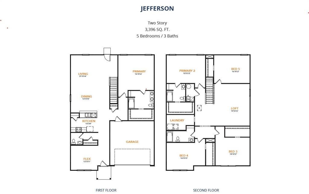 Property Description: MLS# 21190866 - Built by NHC - Jun 2026 completion! ~ Model 3396 B1 - Jefferson- The Jefferson Plan from our Liberty Series redefines spacious living, offering a layout designed for ultimate comfort and convenience. This 2-story home features 5 bedrooms, 3 bathrooms, a 2-car garage, and a generous 3,396 square feet of living space. This unique plan includes two primary bedrooms, each with a private bathroom — one conveniently located on the main level and the other on the upper level, offering flexible living options for multigenerational families or hosting long-term guests. As you enter, you’ll pass a versatile flex room and a half bathroom before arriving at the open-concept kitchen. The kitchen, complete with a central island, seamlessly overlooks the dining area and spacious family room, making it the heart of the home. Stairs located in the family room lead to the upper level, where you’ll find three additional bedrooms, one full bathroom, a huge loft for additional living or entertaining space, and a conveniently located laundry room.