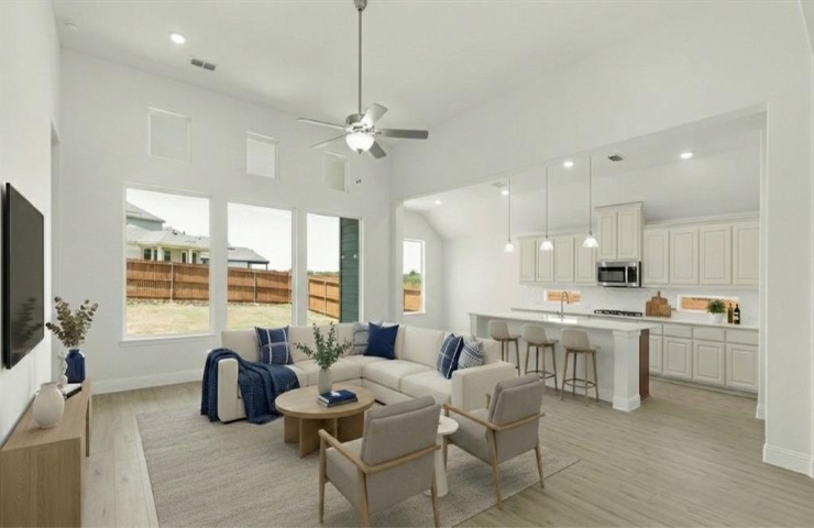 Property Description: MORTGAGE INCENTIVE UP TO $6,000 2-1 RATE BUY DOWN on this Brand-new construction by Pacesetter Homes — Fantastic 1-story home featuring 4 bedrooms and 2.5 baths with an open, modern layout designed for comfortable living and easy entertaining. The spacious family room showcases soaring 12-foot ceilings, transom windows, and a bright foyer that fills the home with natural light. The kitchen is built for gathering, offering crisp white cabinetry, a striking two-tone oversized island, stone countertops, gas cooktop, built-in oven and microwave, and stainless steel appliances. A versatile bonus room provides flexible space for a media room, office, den, or secondary lounge. The private primary suite is tucked away from the secondary bedrooms, creating a peaceful retreat with extra windows, two walk-in closets, and direct utility room access from the main closet. The spa-like bath features a frameless glass shower and dual vanities. Luxury vinyl plank flooring enhances the main living areas with durable, low-maintenance style. Smart home features include a Ring video doorbell, Brilliant smart home lighting and music control, Honeywell Smart T6 thermostat, WiFi-enabled garage door, and Rain Bird WiFi sprinkler system. The exterior showcases distinctive architecture with standout curb appeal. Located in a rapidly growing community with an onsite school and resort-style amenities including a clubhouse, dock, pool, fishing areas, fitness center, and scenic greenbelt spaces — all within 30 minutes of Dallas.