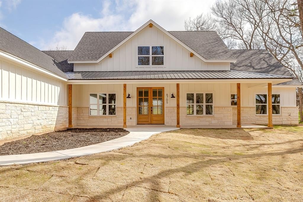 Property Description: Welcome to 6705 Westover, a beautifully designed custom farmhouse nestled within the highly sought after & amenity rich community of Pecan Plantation in Granbury, TX. From the moment you arrive, the striking white exterior with bold black trim sets the tone for a home that is equal parts stylish, warm & thoughtfully crafted. Inside, gorgeous luxury vinyl plank flooring flows throughout the main living spaces, offering both durability & high end appeal, while the open concept layout creates an inviting atmosphere ideal for both everyday living & entertaining. A dedicated home office provides the perfect work from home setup or flexible space, thoughtfully positioned for privacy. The heart of the home is the kitchen, featuring an abundance of custom cabinetry, a large center island with Carrara quartz countertops, a timeless custom backsplash, & a window above the sink overlooking the backyard that fills the space with natural light. The split bedroom floor plan offers comfort & privacy, with the primary suite serving as a true retreat complete with spa inspired ensuite bath featuring a luxurious soaking tub, separate walk in shower with custom tile work, refined finishes, and an oversized primary closet with custom built ins. Step outside to the covered back patio, an ideal space to relax or entertain while enjoying the peaceful surroundings, with frequent sightings of deer roaming nearby lots adding to the serene setting. Located within the gates of Pecan Plantation, residents enjoy access to two championship golf courses, multiple on site restaurants, a private grocery store & gas station, parks, walking trails, marina & dock access on Lake Granbury, & Brazos River frontage, all contributing to an exceptional lifestyle. 6705 Westover offers the rare opportunity to own a thoughtfully designed home in one of the Metroplex’s most desirable master planned communities, combining quality craftsmanship, natural beauty, & resort style amenities in one exceptional property.