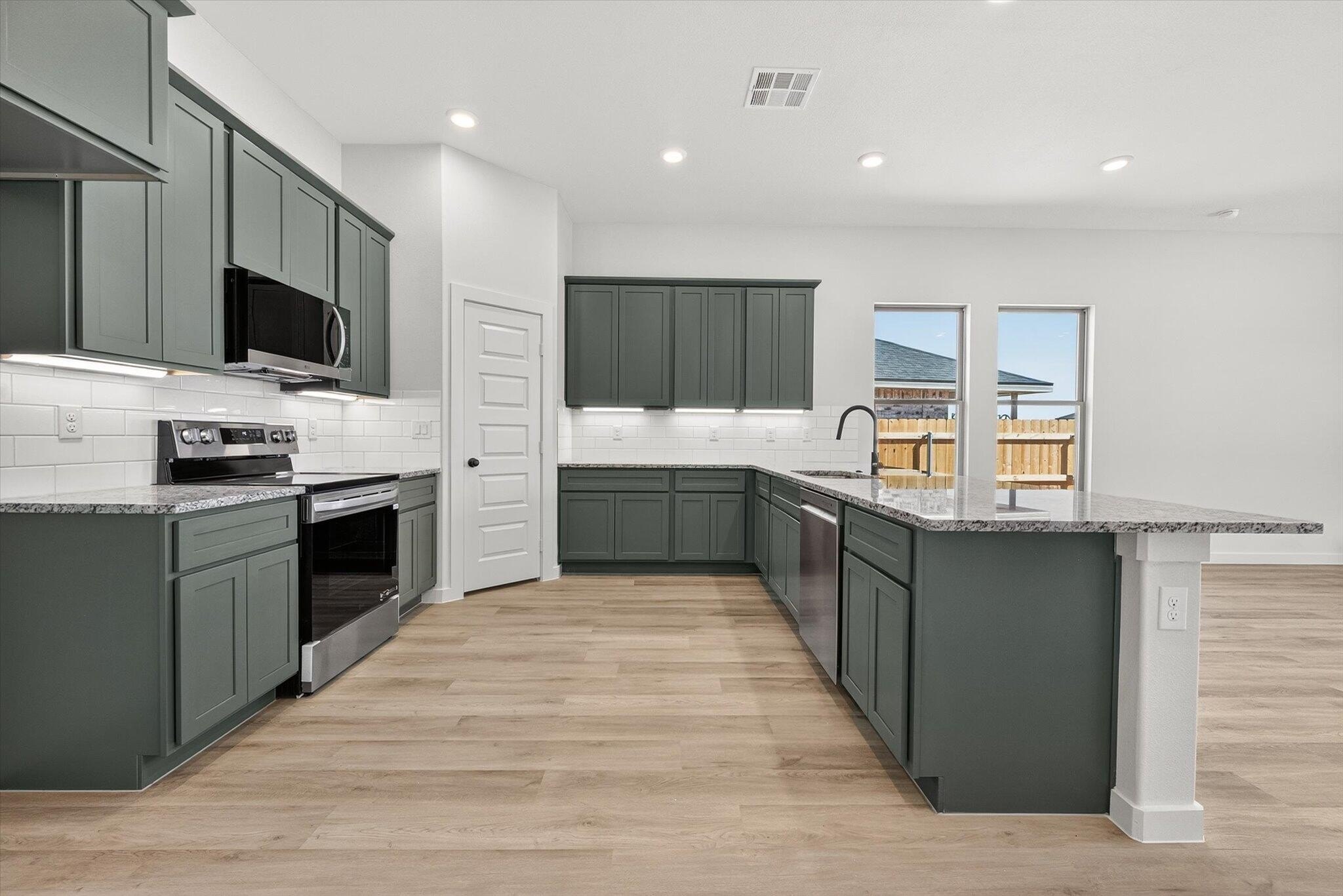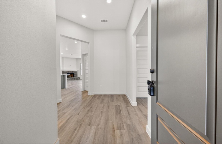 Property Description: Buy NOW and get up to $10,000 Use-It-Your-Way CASH! This beautifully designed home features a classic brick exterior and a covered front entryway, offering both curb appeal and comfort. Inside, luxury vinyl plank flooring flows seamlessly through the open-concept kitchen, living, and dining areas. The kitchen boasts granite or quartz countertops, a spacious peninsula with bar seating, stainless steel appliances, and a large enclosed pantry. Relax in the cozy living room by the corner brick fireplace, adding warmth and charm. The secluded master suite is a true retreat, featuring a drop-in tub, walk-in shower, his and hers vanities, and a walk-in closet with direct access to the utility room. A covered back patio provides a perfect outdoor space to unwind. Premium plumbing and lighting fixtures complete the home's sophisticated design.