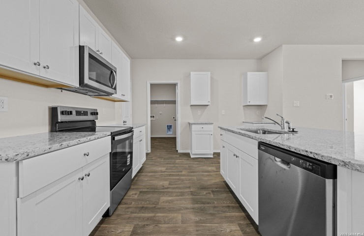 Property Description: Introducing The Hanna, a two-story home featuring 4 bedrooms, 2.5 baths, and a 2-car garage at Salado Creek, a new home community in San Antonio, TX. Here you will find a beautiful open-concept layout with 2042 square feet of functional living space. Your kitchen, dining area and family room blend together seamlessly with plenty of room for everyday living as well as plenty of natural light from the large windows. The gourmet kitchen includes quartz counter tops, stainless steel appliances, shaker style cabinetry and a kitchen island overlooking the living area. The main bedroom suite is downstairs and features quality carpet flooring and an attached bathroom complete with separate water closet, quartz vanity counter top, tiled walk-in shower and a large walk-in closet. The second story includes a full bathroom, a game room, and all secondary bedrooms. Whether these rooms become bedrooms or other bonus spaces, there is sure to be comfort. Additional features of The Hanna floor plan include sheet vinyl flooring in entry, living room, and all wet areas, quartz bathroom counter tops throughout the home, and rear covered patio over looking full yard landscaping and irrigation. This home includes our HOME IS CONNECTED base package. Using one central hub that talks to all the devices in your home, you can control the lights, thermostat and locks, all from your cellular device. *Seller is willing to assist with closing costs or a rate buy-down through preferred lender with an acceptable offer. *