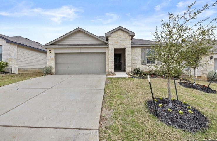 Property Description: The Irvine is one of our one-story floorplans offered at Arroyo Ranch in Seguin, Texas. This 4-bedroom, 2-bathroom home includes a 2-car garage within its 1,796 square feet of comfortable living space. Step into this home from the covered entryway and make your way down the hall to the main living space. The open kitchen looks out to your dining area and family room, allowing for conversations to easily flow from all spaces. The L-shaped kitchen includes granite countertops, a large island with an undermount sink, a corner pantry closet, stainless-steel appliances and 36'' upper cabinets. Off the family room is the primary bedroom, with its own private bathroom. This relaxing bathroom space features a 5' walk in shower, double sink vanity, private toilet area with a door, and an oversized walk-in closet. At the front of the house, you will find bedroom 2 and 3, with the secondary bathroom conveniently located between the rooms. Bathroom 2 includes a tub/shower combination and open shelving for extra storage or decor. Across the foyer and down a short hall is the utility room and bedroom 4. Whether you use these rooms as an office, child's room or guest room, there is enough space for work, sleep, and play. *Seller is willing to assist with closing costs or a rate buy-down through preferred lender with an acceptable offer. *