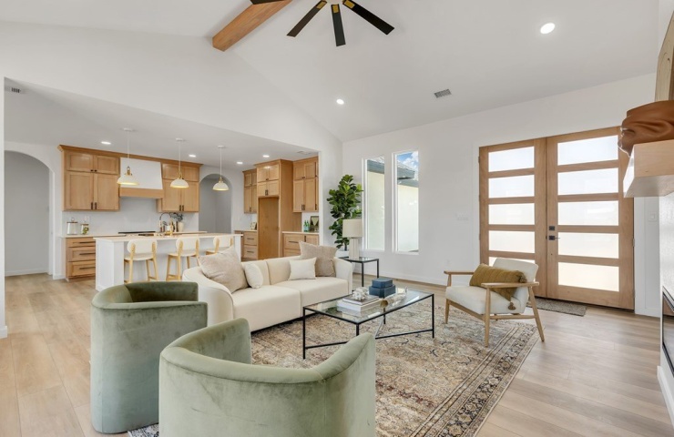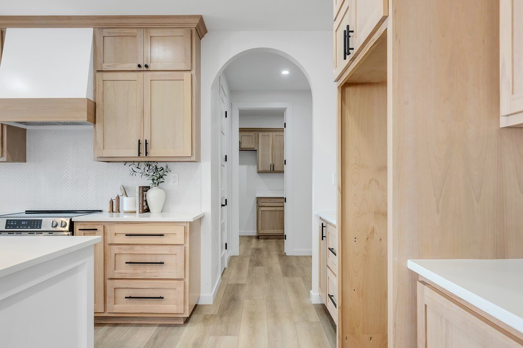 Property Description: Welcome to luxury and warmth! Vaulted ceilings greet you in the living room, creating a bright and inviting space. The kitchen features custom 10-ft light-stained cabinets and a beautiful neutral palette. Thoughtful details include 8-ft interior doors and a convenient wrap-around from the primary closet to the laundry room. The primary suite offers vaulted ceilings and a spa-like bath. A must see in person ? call today!