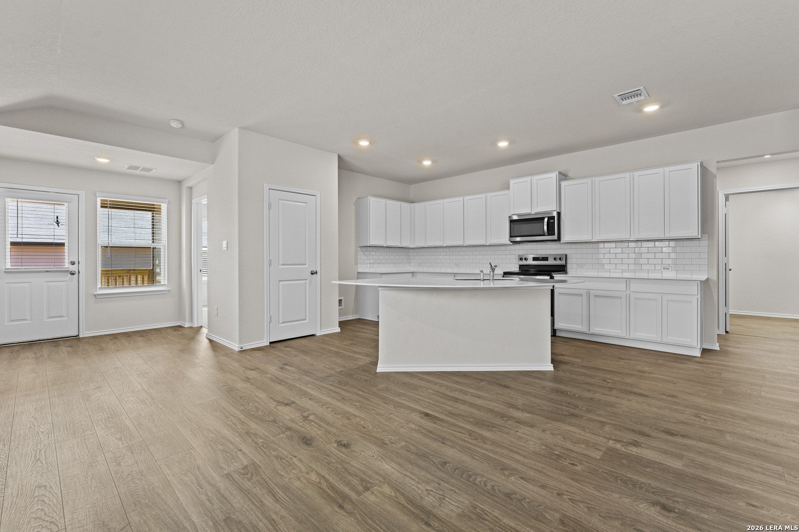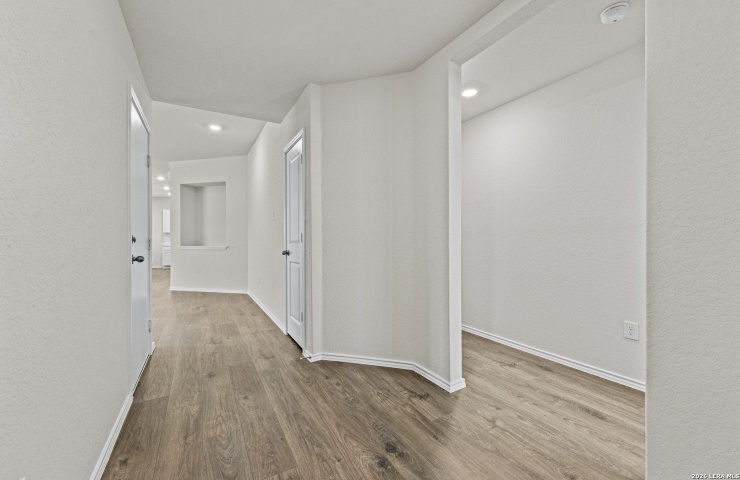 Property Description: Welcome to The Knight, our largest single-story home offered at High Garden in Comfort, TX. Featuring 4 bedrooms, 2 bathrooms, 2-car garage and 1901 square feet of living space, this floor plan is sure to turn heads. Spacious, comfortable living greets you at the door with a long foyer leading to a decorative wall nook and a grand, open concept living room, kitchen and dining area. The kitchen is complete with beautiful quartz countertops, stainless steel appliances, classic white subway tile backsplash, and an oversized kitchen island with a deep single basin sink. Your blended living room and dining area feature luxury hard surface flooring and plenty of windows, creating a light and bright space for living and entertaining. The private main bedroom is located at the back of the home and features a large, relaxing ensuite bathroom complete with a separate tub and walk-in shower, dual vanities, a water closet, and spacious walk-in closet. All secondary bedrooms offer quality carpeted floors and a closet. These rooms are versatile! Use them as bedrooms, offices, work out rooms or other bonus spaces. Additional features include tall 9-foot ceilings, 2-inch faux wood blinds throughout the home, ceramic tile in the bathrooms and utility room, and pre-plumb for water softener loop. You'll enjoy added security in your new home with our Home is Connected features. Using one central hub that talks to all the devices in your home, you can control the lights, thermostat and locks, all from your cellular device. *Seller is willing to assist with closing costs or a rate buy-down through preferred lender with an acceptable offer. *
