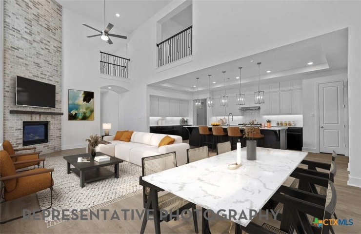 Property Description: Soaring ceilings in this beautiful 2 story home. The Regis features the Primary and a 2nd bedroom and bath down with 3 bedrooms and a lifestyle room and game room upstairs, which are great for additional living space upstairs. The kitchen features built in appliances and an oversized Hutch in the Kitchen. You'll enjoy watching sports events or movies in the Entertainment room downstairs near the kitchen.