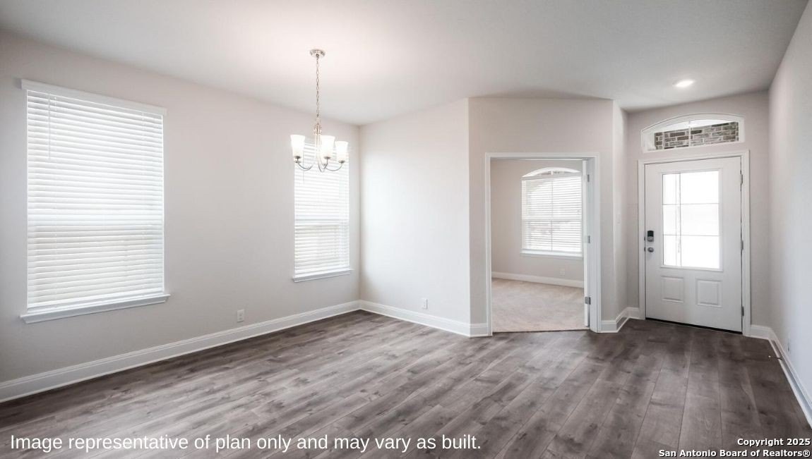 Property Description: The Clydesdale is the largest 2-story plan offered in Riverstone at Westpointe in San Antonio, TX. Featuring 3 classic front exteriors, this 5 bedroom, 3.5 bathroom home also offers 3534 square feet of living space and a 2-car garage. Step inside from the front porch to find an inviting entry way that opens to an office area, a charming formal dining room and your blended kitchen and breakfast area. The gourmet kitchen features spacious quartz countertops with classic white subway tile backsplash, gleaming stainless steel appliances, a natural gas cooking range, shaker style cabinets and a corner walk-in pantry. A spacious kitchen island with an eat-in bar overlooks your breakfast area so you will never miss a moment with your loved ones. The spacious living room is separated from the breakfast nook by a half wall and includes a ceiling fan, plenty of windows, hard surface flooring and a doorway leading to the back covered patio (per plan). Entertain your guests or relax with the family in your fully landscaped and irrigated backyard. Enjoy the private main bedroom suite situated off the breakfast nook, featuring quality carpet and a ceiling fan. Your attractive ensuite bathroom includes dual vanity sinks with a cultured marble countertop, a tiled walk-in shower and a generous walk-in closet. Enjoy added privacy with a separate room for the toilet. The second floor of The Clydesdale offers a large open game room area with plenty of space to play or entertain. A hallway off the game room area connects a full bath, two secondary bedrooms and a third secondary bedroom with private full bath and walk-in closet. Whether these rooms stay bedrooms or are created into other bonus spaces, there is sure to be functionality. Additional features of this home include, tall nine foot ceilings, pre-plumb for a water softener loop and two inch faux wood blinds throughout the home. You'll enjoy added security in your new home with our Home is Connected features. Using one central hub that talks to all the devices in your home, you can control the lights, thermostat and locks, all from your cellular device.