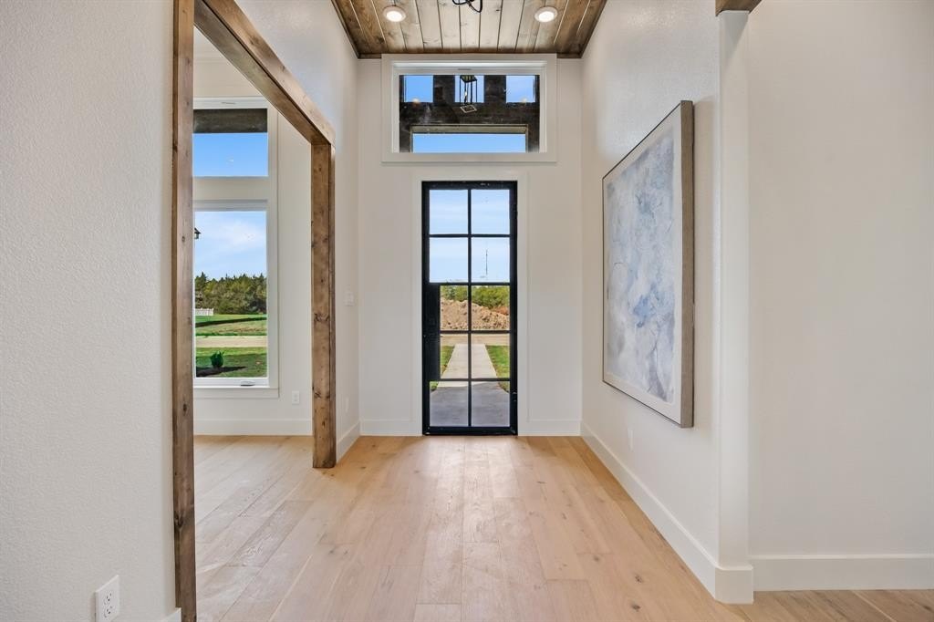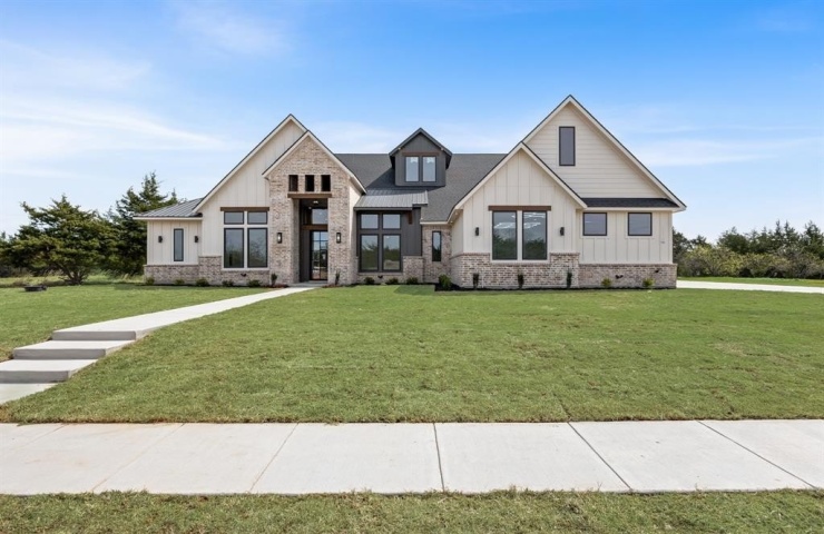 Property Description: Welcome to this new custom-construction 4-bedroom, 3.5-bath farmhouse situated on a 1+ acre lot in the popular Whispering Winds subdivision. The grand entrance opens to soaring ceilings and a warm, welcoming interior, featuring wood floors and natural modern accents that flow throughout the open-concept living spaces. The spacious kitchen is designed to impress with granite countertops, stainless Kitchenaid appliances, and an oversized island, a Butlers pantry or Coffee Bar and a walk-in pantry! The home’s split-bedroom layout includes a playroom or youth's media area along with a dedicated office for added functionality, while the expansive primary suite serves as a tranquil retreat, complete with a luxurious en-suite bath featuring dual sinks, a Freestanding Tub, and elegant finishes. With 8-foot doorways and tall ceilings throughout, the home feels grand and airy, with natural light available to each room. Cozy up by the stone fireplace on chilly evenings, or step outside to the covered patio, offering ample space to host gatherings or simply enjoy the peaceful surroundings. This property also includes a three-car garage with epoxy floors. Experience the charm and serenity of country living with easy access to modern amenities in this inviting farmhouse.