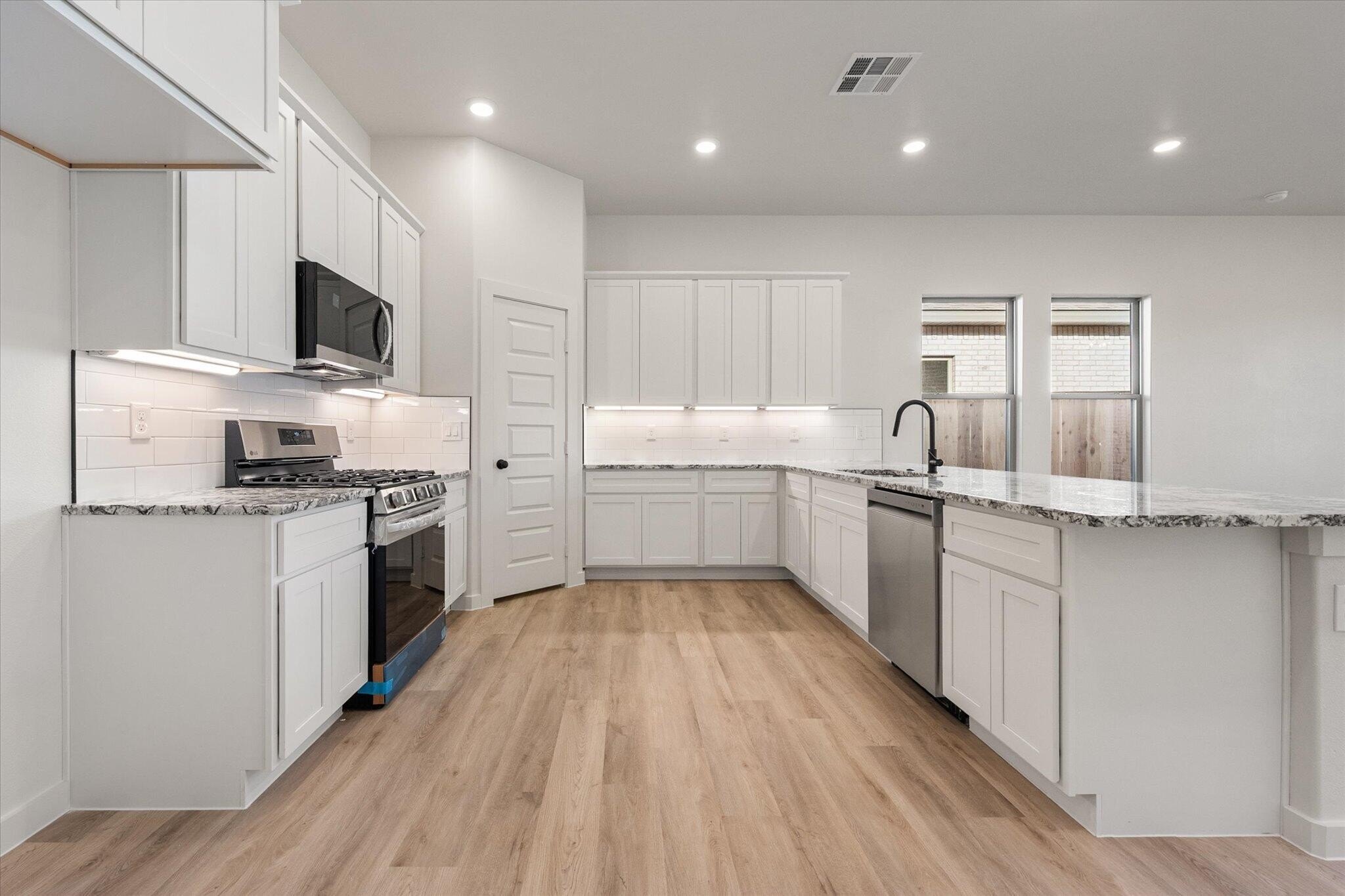 Property Description: Buy NOW and get up to $10,000 Use-It-Your-Way Cash! Step into comfort and style with this beautifully designed 3-bedroom, 2-bath home featuring a timeless brick exterior and a welcoming covered front entryway. Inside, luxury vinyl plank flooring flows seamlessly through the spacious open-concept living, dining, and kitchen areas-perfect for both everyday living and entertaining. The modern kitchen is a true centerpiece, boasting granite or quartz countertops, a large peninsula with bar seating, stainless steel appliances, and an oversized enclosed pantry for ample storage. A cozy corner brick fireplace adds warmth and charm to the living space. Retreat to the secluded master suite, complete with a spa-like bathroom featuring a relaxing drop-in tub, walk-in shower, dual vanities, and a generous walk-in closet with convenient access to the utility room. Enjoy outdoor living year-round on the covered back patio, and take advantage of the 2-car garage for added convenience. With premium plumbing and lighting fixtures throughout, this home blends quality craftsmanship with modern comfort-ready for you to move in and make it your own.