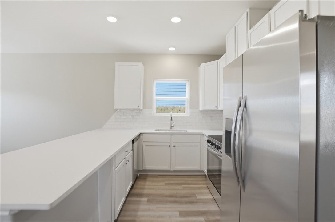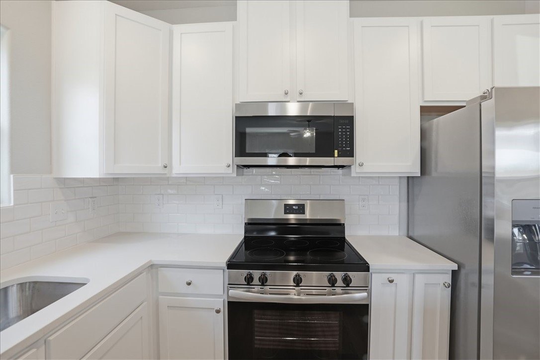 Property Description: Amazing Opportunity to buy a new home at a great price! This home has everything ... step into an open concept living room and kitchen. Fully equipped kitchen with all Stainless Steel appliances and Refrigerator included. Subway tile backsplash and quartz countertops give the kitchen a stylish and modern look. Primary suite downstairs with ample closet space and private bathroom with barn door and big shower. Downstairs features a half bath for guests and a separate washroom with a laundry shoot from second floor. Up the wide stair well you will find two guest bedrooms with a full bath tub/ shower combo. Lots of storage both upstairs and downstairs. Check out the fully fenced backyard with side storage. What a great home ready for you to call home ! New build amenities include storm impact windows, foam insulation, R/15 Walls R/25 Ceiling, 2-10 Builder Warranty, Central Heat/Air, Luxury Vinyl Floors throughout.
