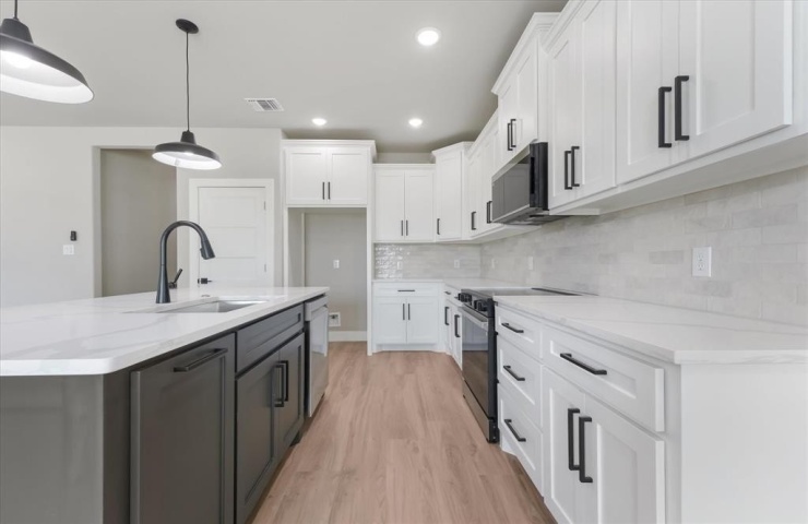Property Description: Welcome to this beautifully crafted new construction home! Featuring a striking brick and stone exterior, this home offers incredible curb appeal with long driveway and spacious lot. Step inside to an open concept layout filled with natural light, soaring ceilings, and stylish finished throughout. The kitchen showcases elevated design and functionality, complete with a large island, sleek quartz countertops, custom cabinetry, modern black fixtures and designer pendant lighting perfect for entertaining. The living and dining areas flow seamlessly, highlighted by a statement accent wall and expansive space for gatherings. Step outside to enjoy a large backyard with mature trees, ideal relaxing and entertaining, with convenient access through the extended driveway perfect for additional parking, easy entry, or outdoor use.