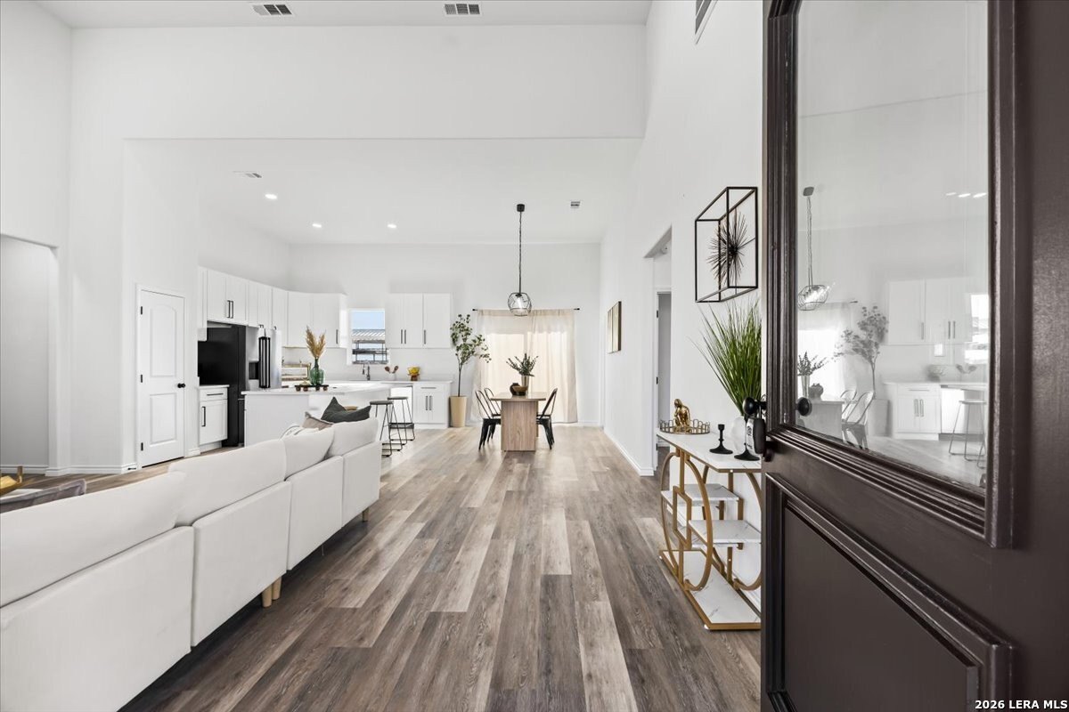 Property Description: Modern design meets peaceful country living on this beautiful 1-acre property with no HOA. This 3-bedroom, 2-bath home features an open-concept layout with soaring ceilings and oversized windows that fill the home with natural light. The kitchen is designed for both style and function, offering custom cabinetry, a large island, and modern finishes that open seamlessly to the spacious living area-perfect for entertaining or everyday living. The primary suite provides a private retreat and includes a well-appointed bathroom with a soaking tub and separate shower for added comfort and convenience. Step outside to the expansive backyard with plenty of space to relax, entertain, or create your ideal outdoor setting. An additional concrete slab is already in place, ready for a pergola, outdoor kitchen, or covered patio. Enjoy the privacy and space of country living while still being within reach of nearby amenities. End each day with breathtaking sunset views across the open landscape, an incredible feature that makes this property truly stand out.