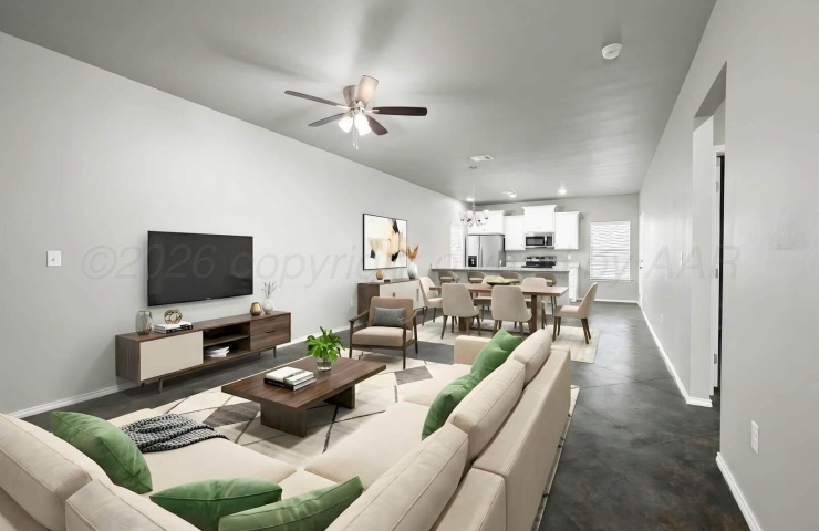 Property Description: MLS# 26-271- Built by Bluehaven Homes - Ready Now! ~ Maximize your value with up to $15,000 in seller concessions on this move-in-ready home! This stunning new construction home is located in the desirable Tierra Blanca subdivision. With 3 spacious bedrooms, including 3 primary suites, and 2 full bathrooms, this residence offers ample space for comfort and privacy. The interior boasts a modern layout featuring a dining room seamlessly connecting the kitchen and living areas, along with a convenient pantry for all your storage needs. The exterior showcases durable brick construction, ensuring long-lasting appeal. The home is equipped with electric heating and cooling systems for year-round comfort.