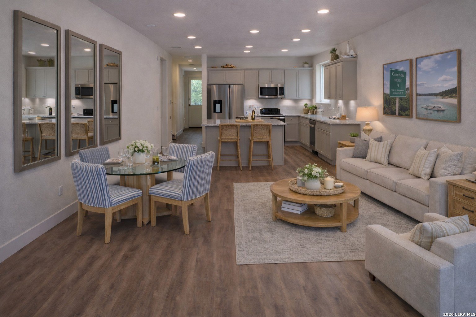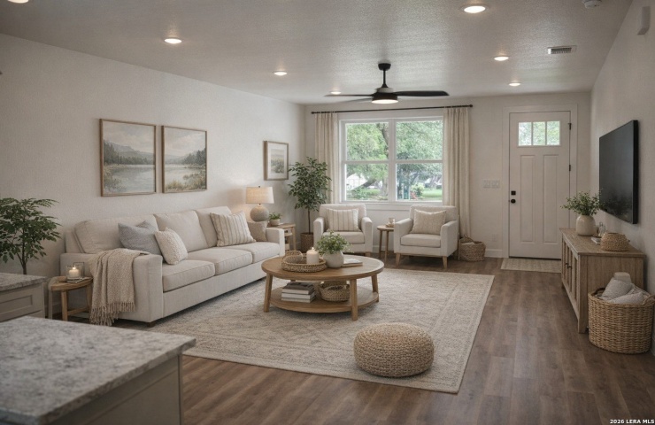 Property Description: A rare opportunity to own this move-in-ready home that combines comfort, style, and location. Light, bright, and beautifully designed single-story Craftsman-Style lake cottage in the heart of the Texas Hill Country perfectly positioned between San Antonio and Austin near Canyon Lake. Thoughtfully styled with a clean, airy feel and designer touches throughout, this home offers easy, low-maintenance living ideal for downsizers, investors, second-home buyers, or first-time homeowners. The open-concept layout features a spacious kitchen with new stainless steel appliances, ample cabinet storage, a walk-in pantry, and a large island with breakfast bar seating perfect for everyday living or casual entertaining. Upgraded gold fixtures add a warm and modern touches throughout the kitchen and baths, while the primary suite includes a walk-in shower with a rain head, granite countertops, and dual vanities. Function meets convenience with an interior laundry room, a dedicated drop zone with built-in seating and storage, and an insulated attached garage wired for a mini-split system. The home is also pre-wired for security cameras. Enjoy peaceful Hill Country living from both the covered front and rear porches. The private backyard backs to mature trees and seasonal creek with no rear neighbor, creating a quiet tranquil setting. Located in the Canyon Lake Forest community with low POA dues of just $75 per year include access to a clubhouse, pool, playground, and BBQ/picnic areas.