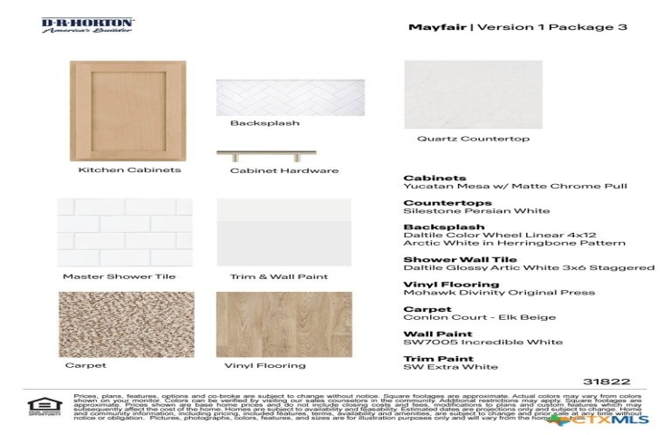 Property Description: JUNE ESTIMATED COMPLETION DATE. NO REAR NEIGHBORS. The Madison is our largest floorplan available . This beautiful two-story home features 5 bedrooms, 3 bathrooms, a gameroom, and 2 car garage across 2,497 square feet of modern living space. Our homes in Mayfair feature front masonry exteriors. Entering the home you'll cross the foyer to the open concept living space. The kitchen faces out to the dining room and family room, allowing for conversations to flow easily across the room. Enjoy the 9' ceilings and natural light from the three rear windows. Kitchen features an island with undermount sink, quartz countertops, a pantry closet, 42" upper cabinets, and stainless-steel appliances, including a gas range. Secondary bedroom and full bathroom are located off the kitchen, perfect for your guests or any family member that need their own space. The oversized utility room is also located off the kitchen and includes a closet for extra storage. Ascend the stairs to the second floor and you'll enter the gameroom. This room can easily be set up as another living space or play area for the kids. The primary bedroom is located at the front of the home. This oversized private ensuite includes a sitting area as well as an attached bathroom. Enjoy the walk-in shower, double vanity with quartz counter tops, private toilet area with a door, and an enormous walk-in closet. Three additional bedrooms and a full bathroom complete the upstairs space. Each bedroom has a closet with wood shelving and both secondary bathrooms have a shower/tub combination. The Madison includes vinyl flooring throughout the common areas of the home, and carpet in the bedrooms. All our new homes feature a covered back patio, full sod, irrigation system in the front and back yard, and a 6' privacy fence around the backyard. This home features our America's Smart Home base package, which includes the Video Front Doorbell, Front Door Deadbolt Lock, Home Hub, Thermostat, and smart switch.